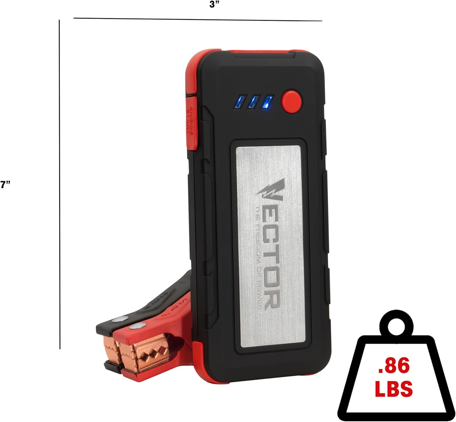 VECTOR SS16LV 1600 Peak Amp Lithium Jump Starter Battery Booster, USB-A and USB-C (3.1 Amps), Power in & Out, LED Work Light, & Heavy Duty Powder Coated Clamps