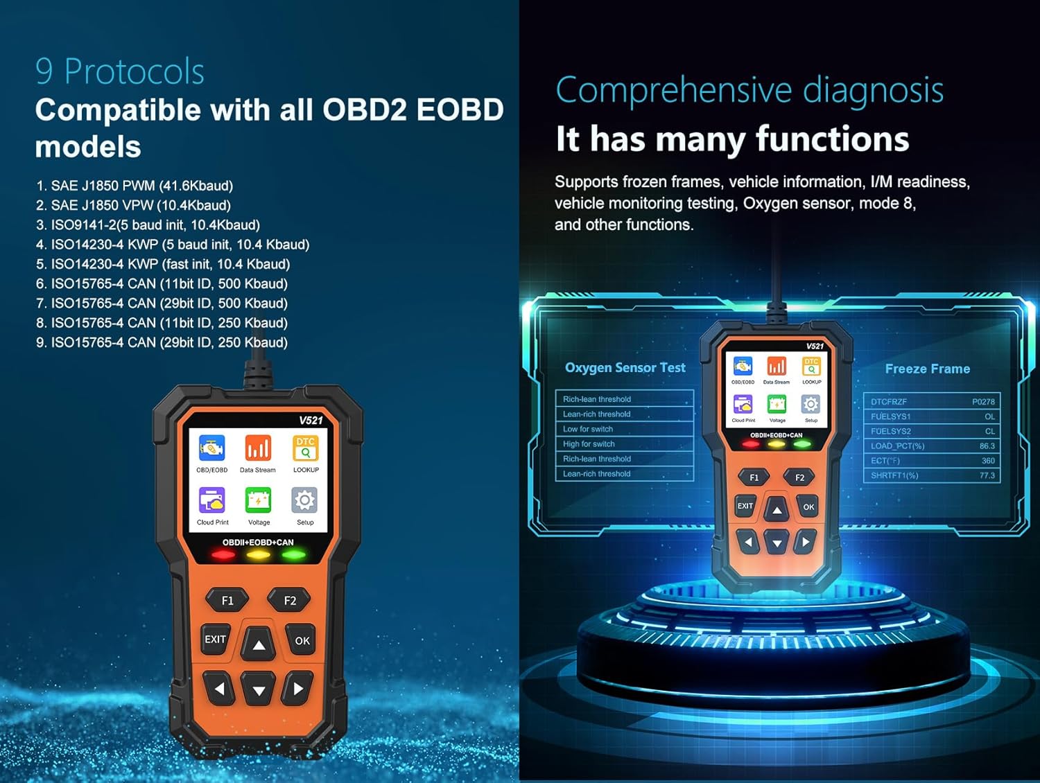 Vehicle Code Reader Auto Obd2 Scanner Diagnostic Tool for car Vehicle Error Code Reader Small car Check Engine Light Tools fixd Fault with Reset Automotive (fit car After 1996 Year)