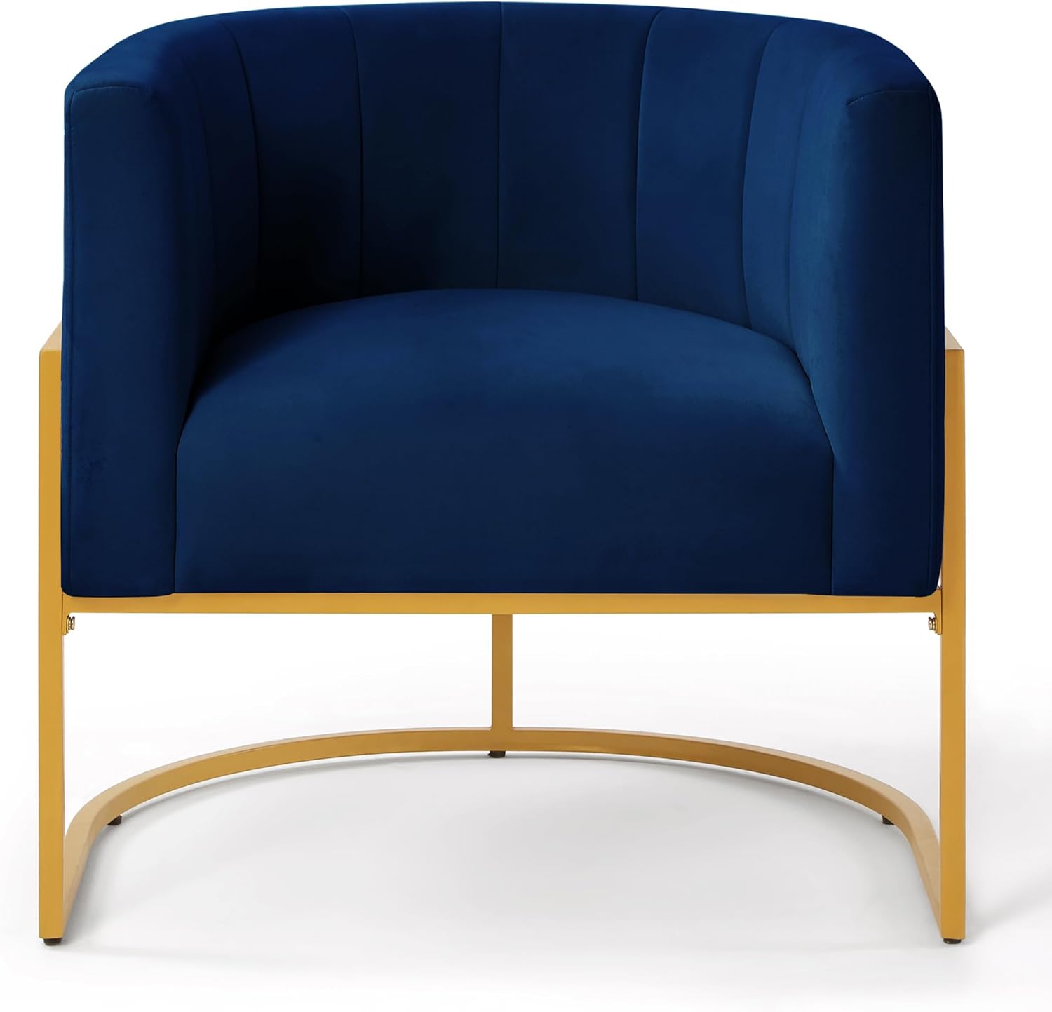Velvet Accent Chairs, Mid Century Modern Upholstered Round Barrel Chair Metal Gold Stand Comfy Velvet Channel Tufting Armchair for Living Room, Bedroom, Office Easy Assemble (Navy Blue, Set of 2)