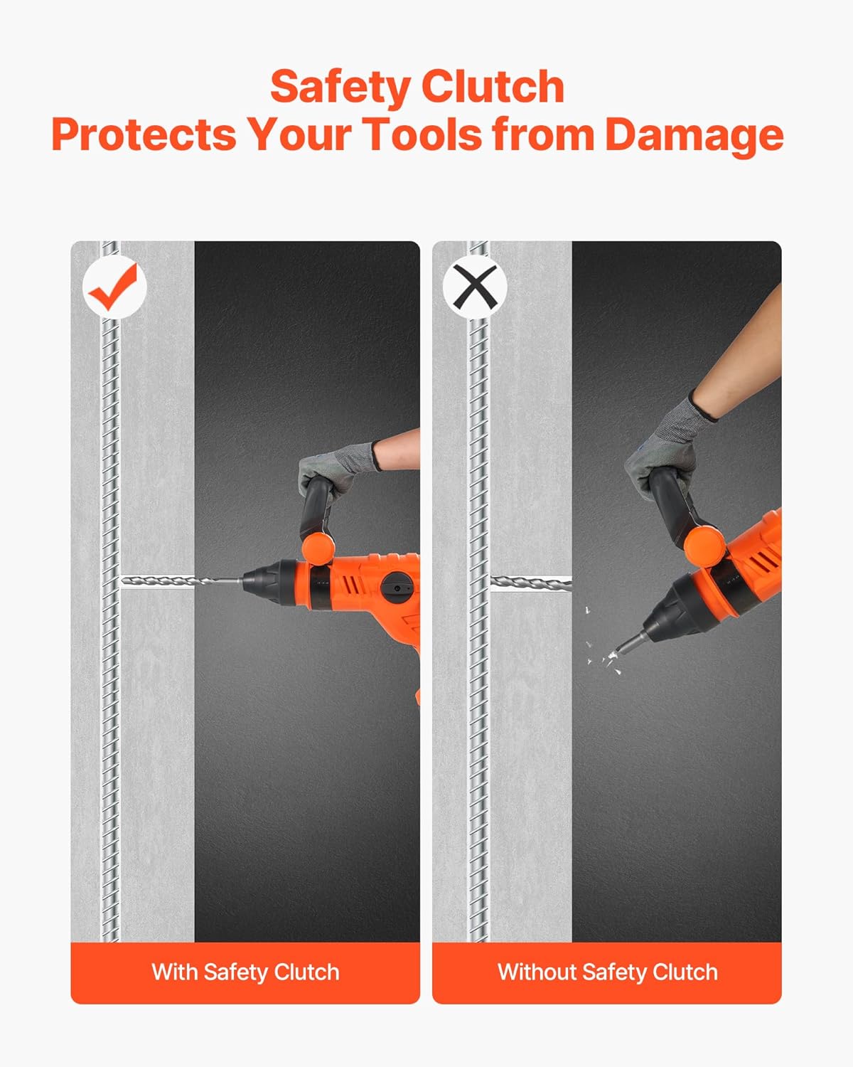 VEVOR 1-3/4" SDS-Max Rotary Hammer Drill, 13Amp Corded Drills, Heavy Duty Chipping Hammers w/Vibration Control & Safety Clutch, Electric Demolition Hammers, Power Tool For Concrete