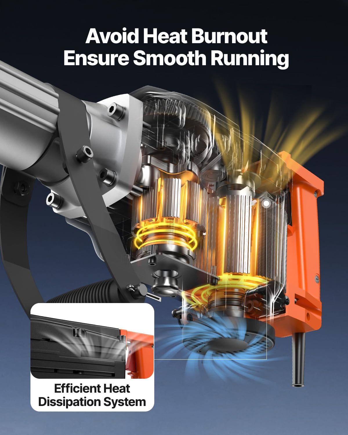 Equipped with a 2200W powerful motor and delivering up to 1350 BPM impact frequency, this demolition jack hammer makes breaking through tough materials a breeze. Whether it's concrete, brick, or stone, it breaks through effortlessly.