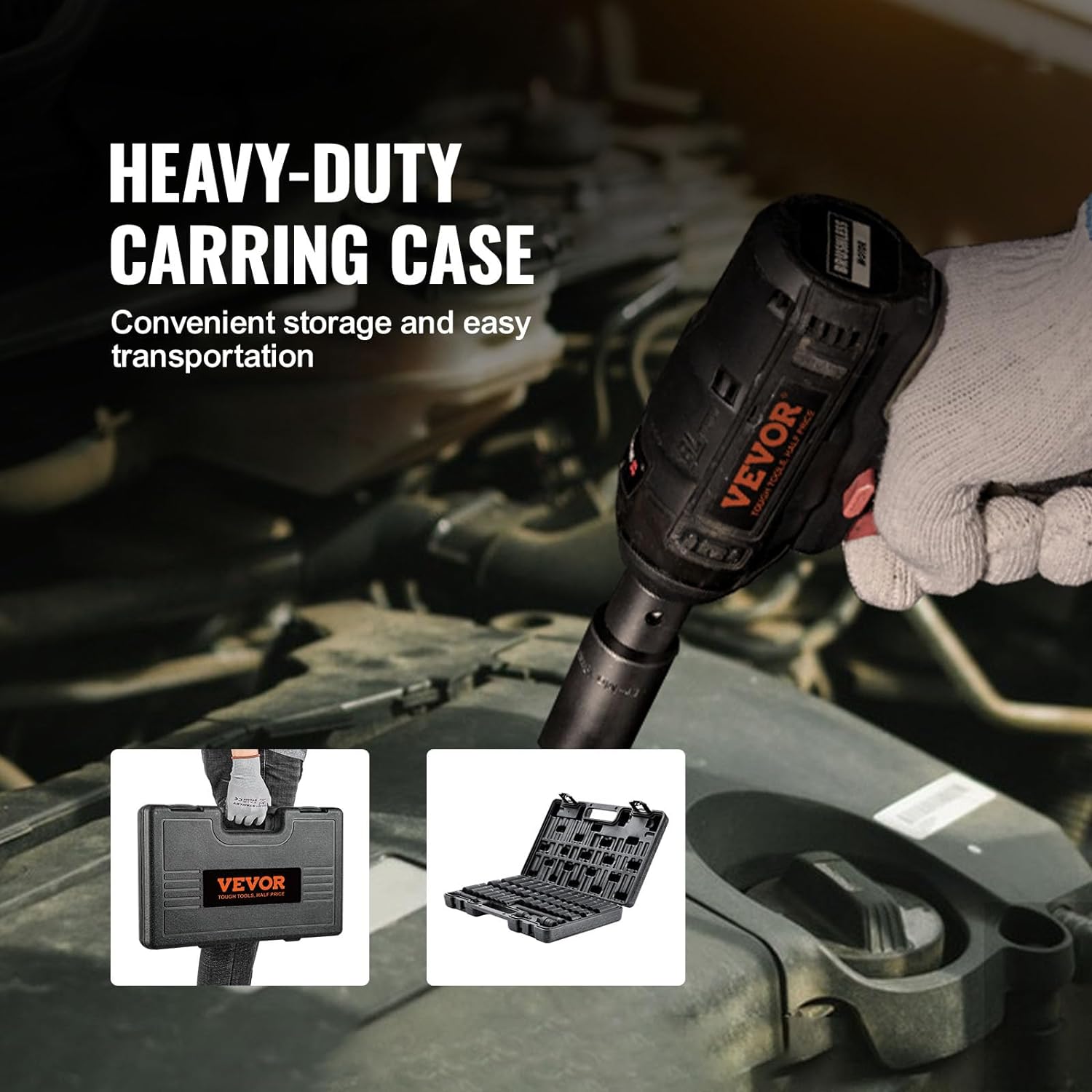 VEVOR Impact Socket Set 3/8" Drive, 48-Piece Standard SAE (5/16 to 3/4 inch) & Metric (8 to 22 mm) Size, Deep & Shallow, 6 Point, CR-V, Extension Bar, Universal Joint, 1/2" F to 3/8" M Reducer
