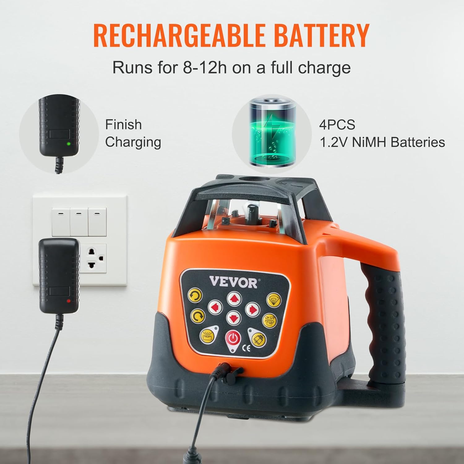 VEVOR Rotary Laser Level 1650ft,360 Degree Self Leveling Red Cross Line Laser,5 Rotation Speeds&4 Scanning Angles Adjustment,IP66 Waterproof Remote Control Manual Self-leveling Mode,Battery Included