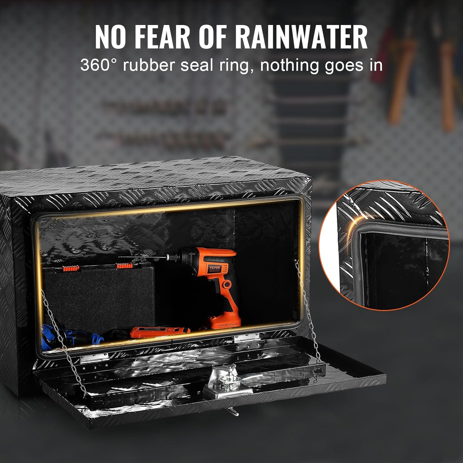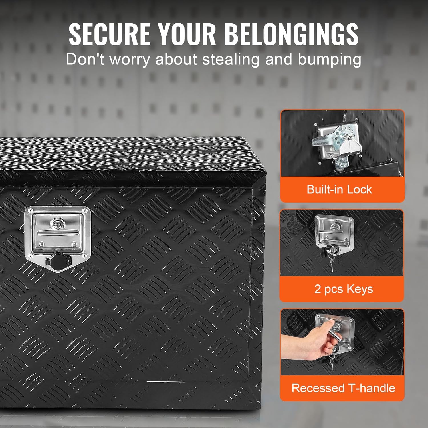 VEVOR Underbody Truck Box, 36" x 14" x 16" Pickup Storage Box, Heavy Duty Aluminum Diamond Plate Tool Box with Lock and Keys, Waterproof Trailer Storage Box with T-Handle Latch for Truck, Van, Trailer