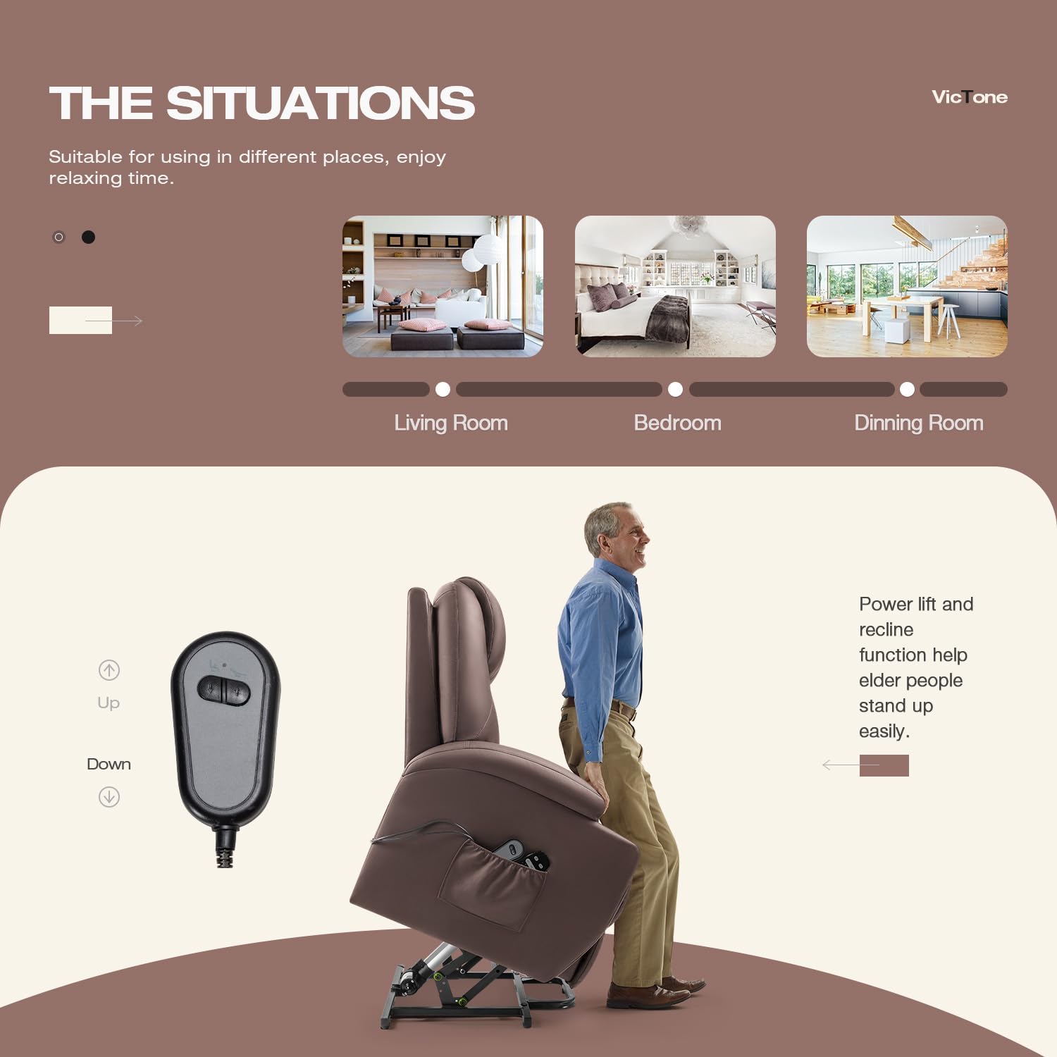 VICTONE Electric Power Lift Recliner Chair for Elderly Reclining Sofa for Living Room with Massage, Side Pockets and Cup Holders (Leather, Brown)