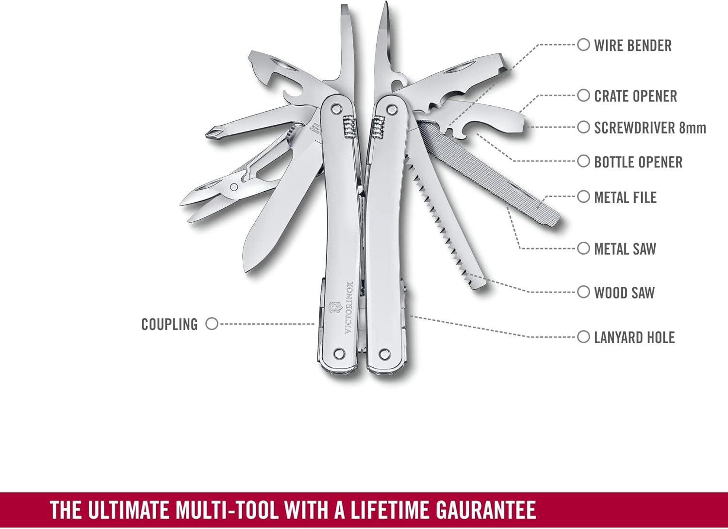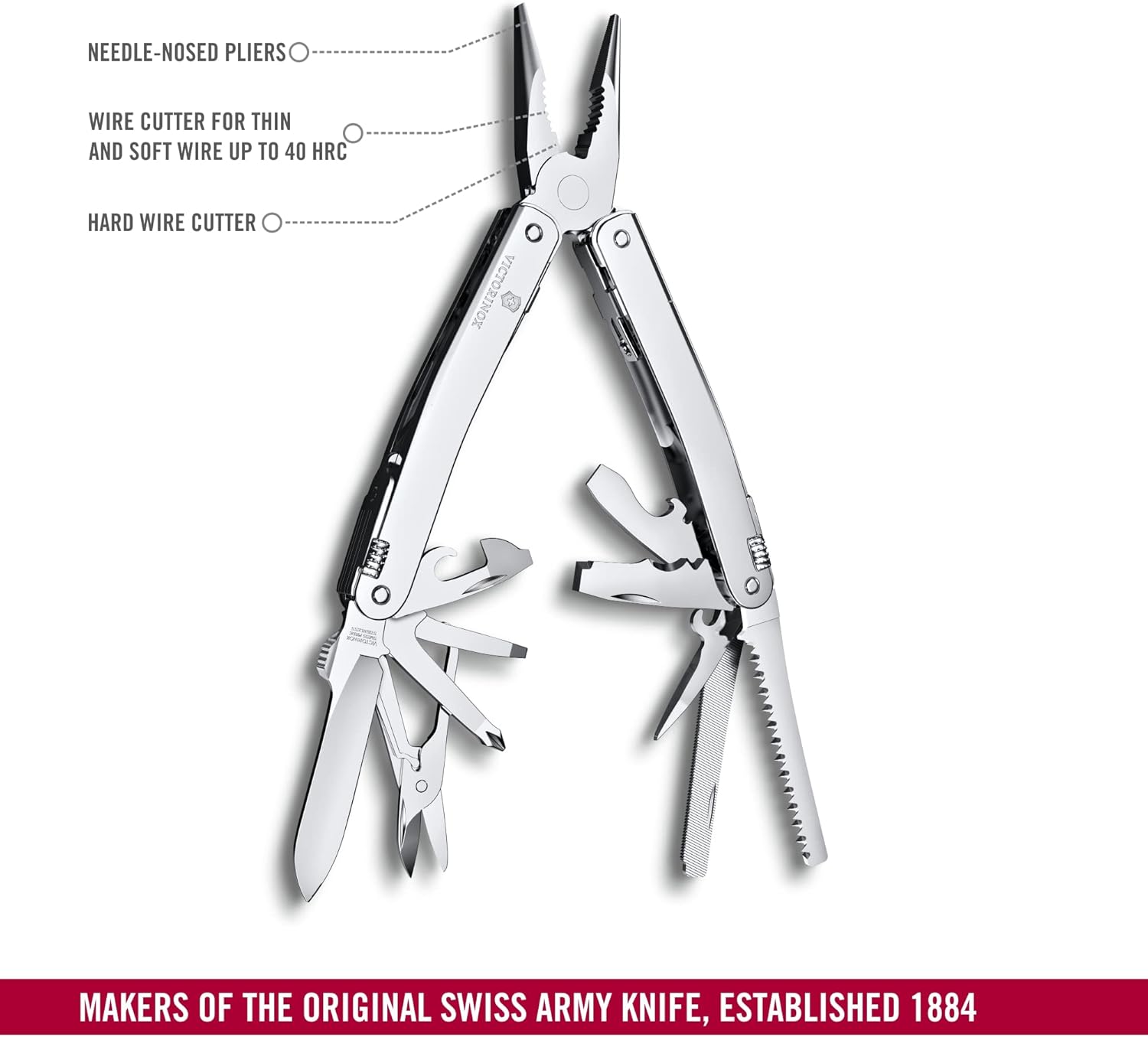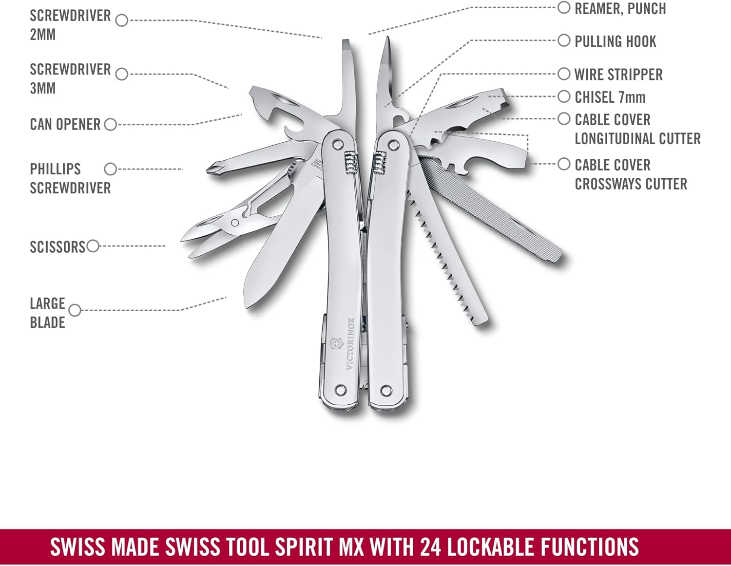 Victorinox Swiss Tool Spirit MX Swiss Army Knife, 24 Function Swiss Made Multitool with Large Blade, Pliers and Wire Cutter - Silver with Nylon Pouch