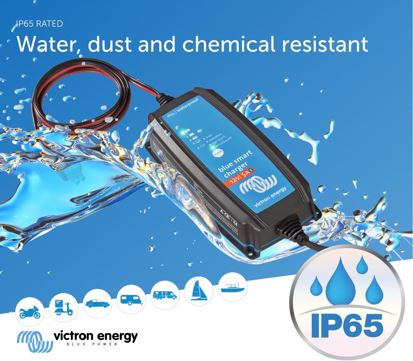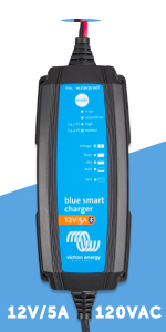 Victron Energy Blue Smart IP65 Smart Car Battery Charger 12V 5A, Float & Trickle Charger and Desulfator for Motorcycle, ATV, RV, Lithium and Deep Cycle Batteries