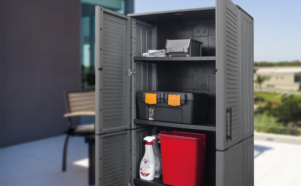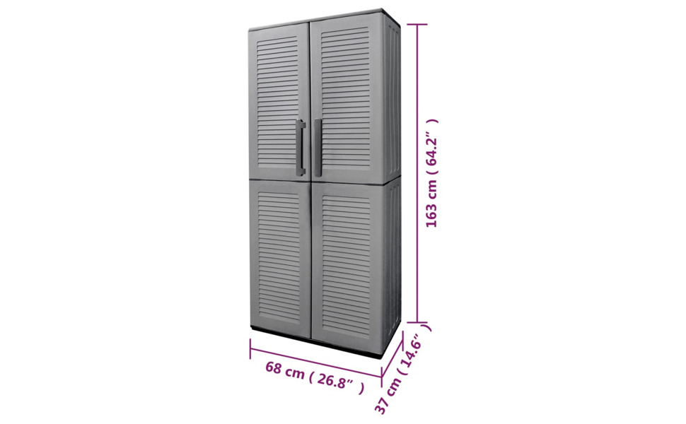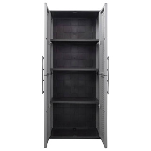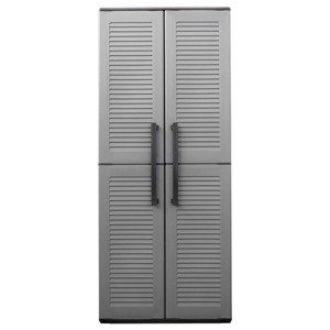 vidaXL Compact Garden Storage Cabinet, Polypropylene Outdoor Tool Organizer, Gray and Black, with Adjustable Shelves and Steel Hinges