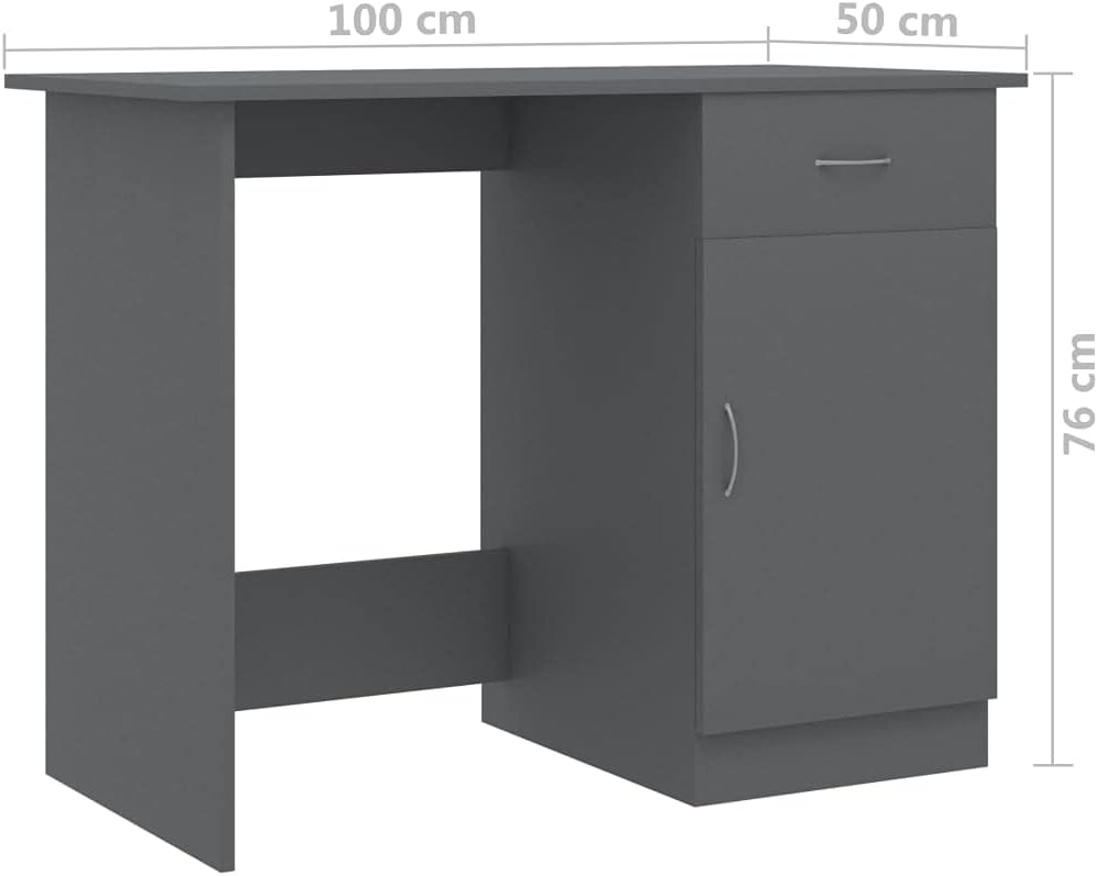 vidaXL Desk Computer Desk Home Office Desk with Drawer Gray Engineered Wood