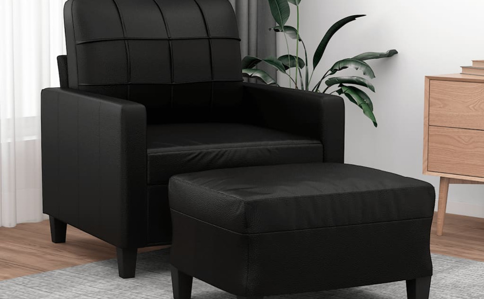vidaXL Durable Black Faux Leather Sofa Chair with Footstool - Comfortable Padded Seat, Recliner, Lounger, Plush Armrests - Sleek Modern Design for Living Room, Lounge, Bedroom