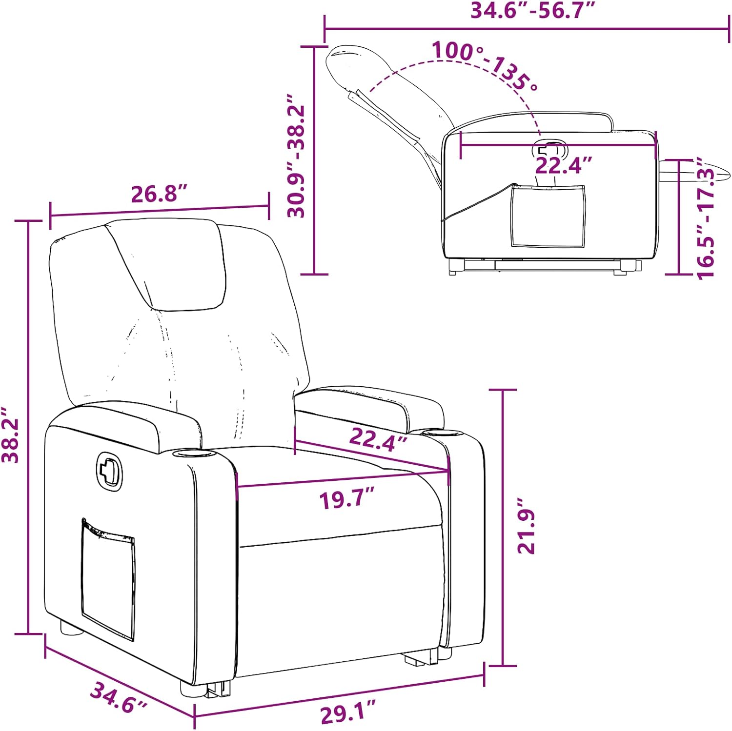 vidaXL Manual Recliner Chair for Living Room, Adjustable Recliner with Padded Seat & Backrest, Home Theater Seating with Side Pocket & Cup Holders, Cream Leather