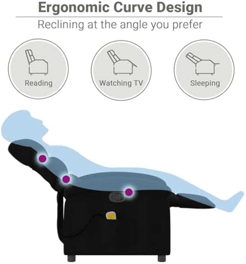 vidaXL Massage Recliner Chair for Adults, Single Theater Seating with Vibration Massage & Manually Adjustable Backrest/Footrest, Modern Reclining Sofa for Living Room, Black Fabric