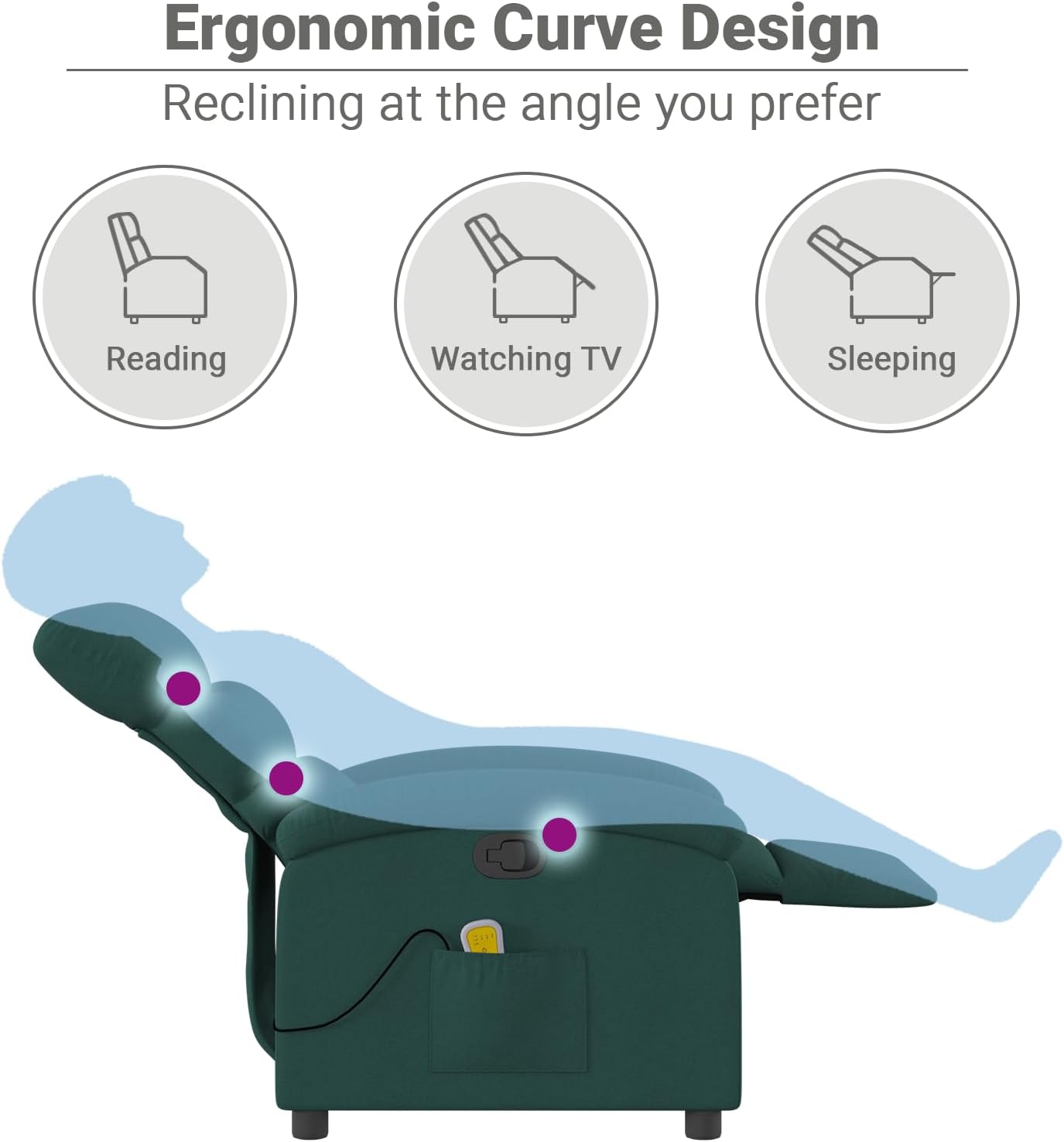 vidaXL Massage Recliner Chair for Adults, Single Theater Seating with Vibration Massage & Manually Adjustable Backrest/Footrest, Modern Reclining Sofa for Living Room, Dark Green Fabric