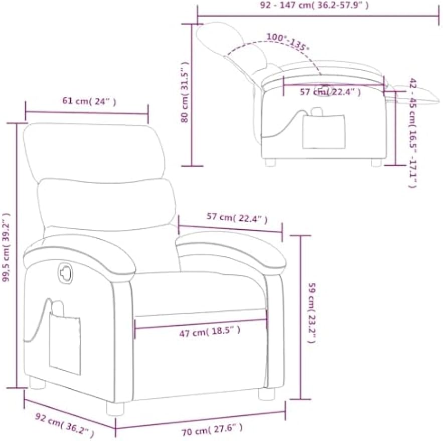 vidaXL Massage Recliner Chair for Adults, Single Theater Seating with Vibration Massage & Manually Adjustable Backrest/Footrest, Modern Reclining Sofa for Living Room, Gray Leather