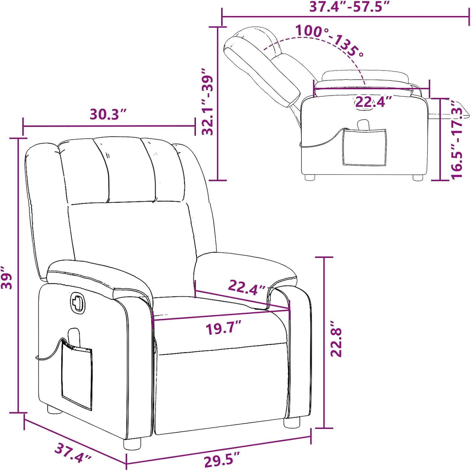 Comfortable Massage Experience: The massage recliner chair is the perfect choice for ultimate relaxation! It features 6 vibration massage points targeting the back, lumbar, and thighs. With a user-friendly remote, you can easily adjust the intensity and choose from 5 different modes to personalize your massage experience and meet your specific needs. The massage function is powered by the USB connector, but the certified 5V USB power source is not included.