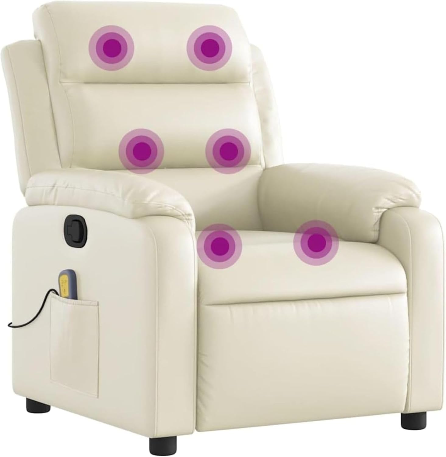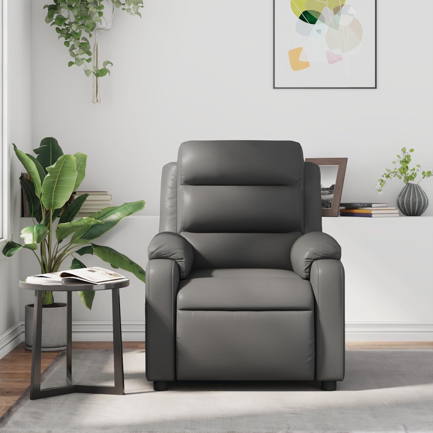 vidaXL Massage Recliner Chair with 6-Point Vibration Massage and Convenient Side Pocket, Grey Leather Rocker, Adjustable Backrest & Footrest Lounge Seat for Living Room, USB Charge Port