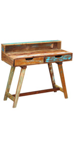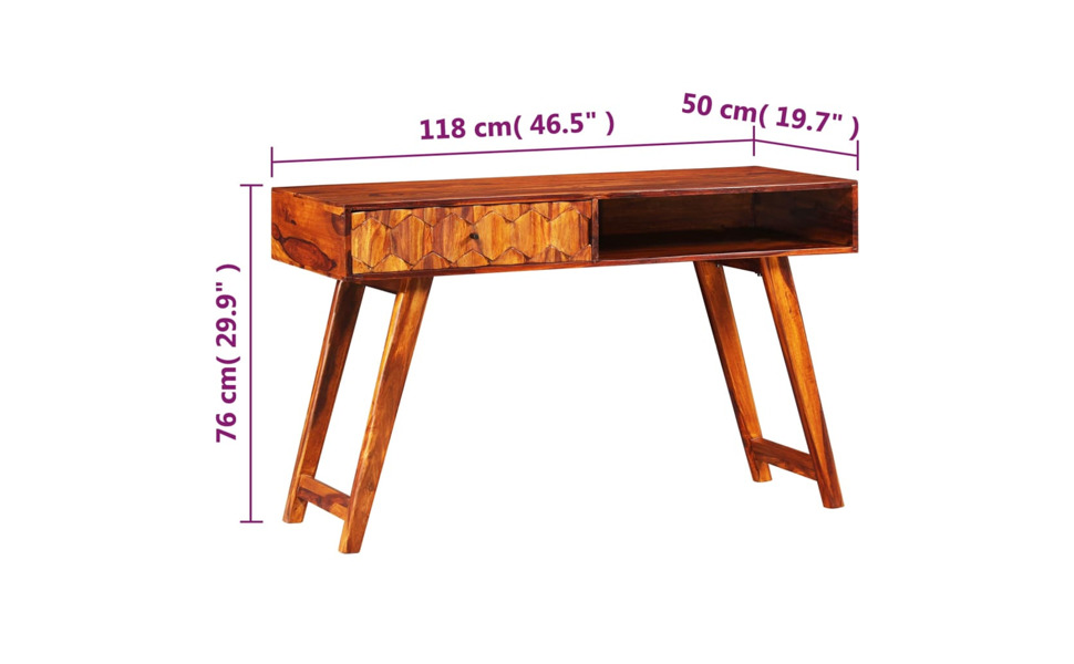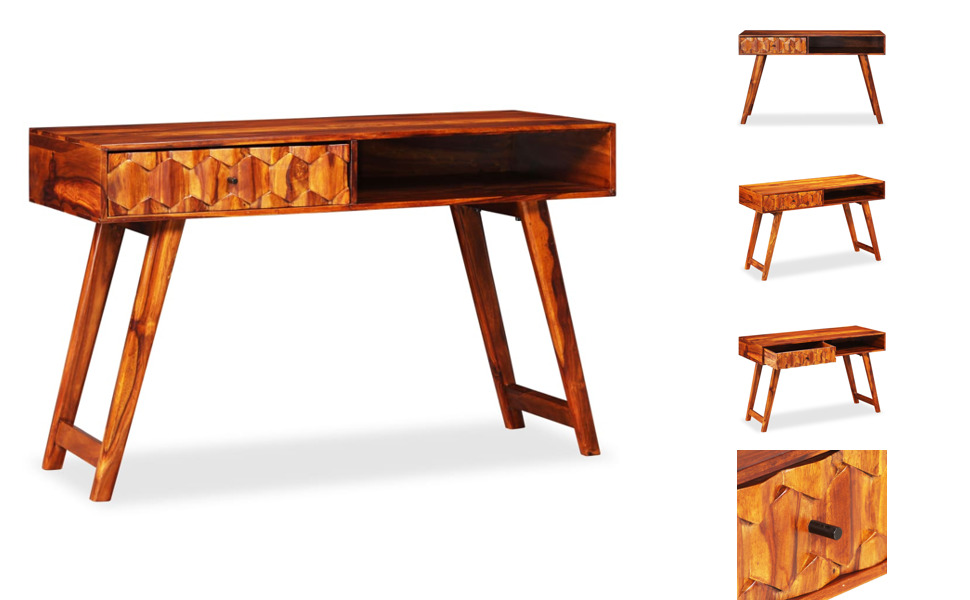 vidaXL Solid Wood Writing Table with Drawer - Brown Scandinavian Style Study and Office Desk with Shelf, Polished, Painted, and Lacq