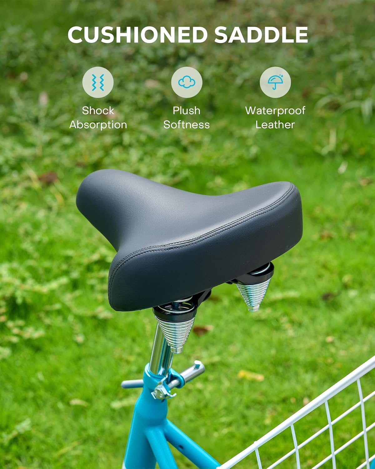 The spacious rear basket holds your shopping or picnic items, and with built-in wheels, you can easily roll it off the bike to carry your belongings