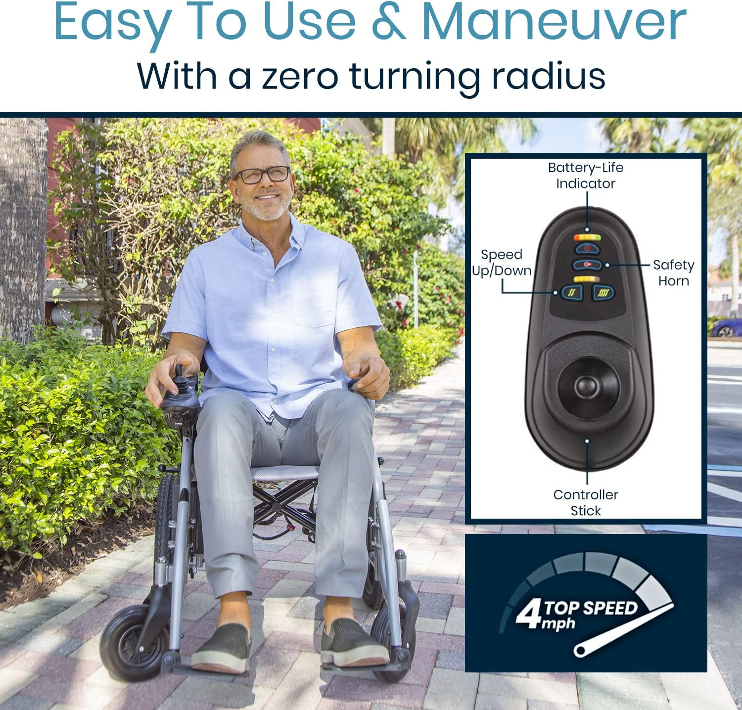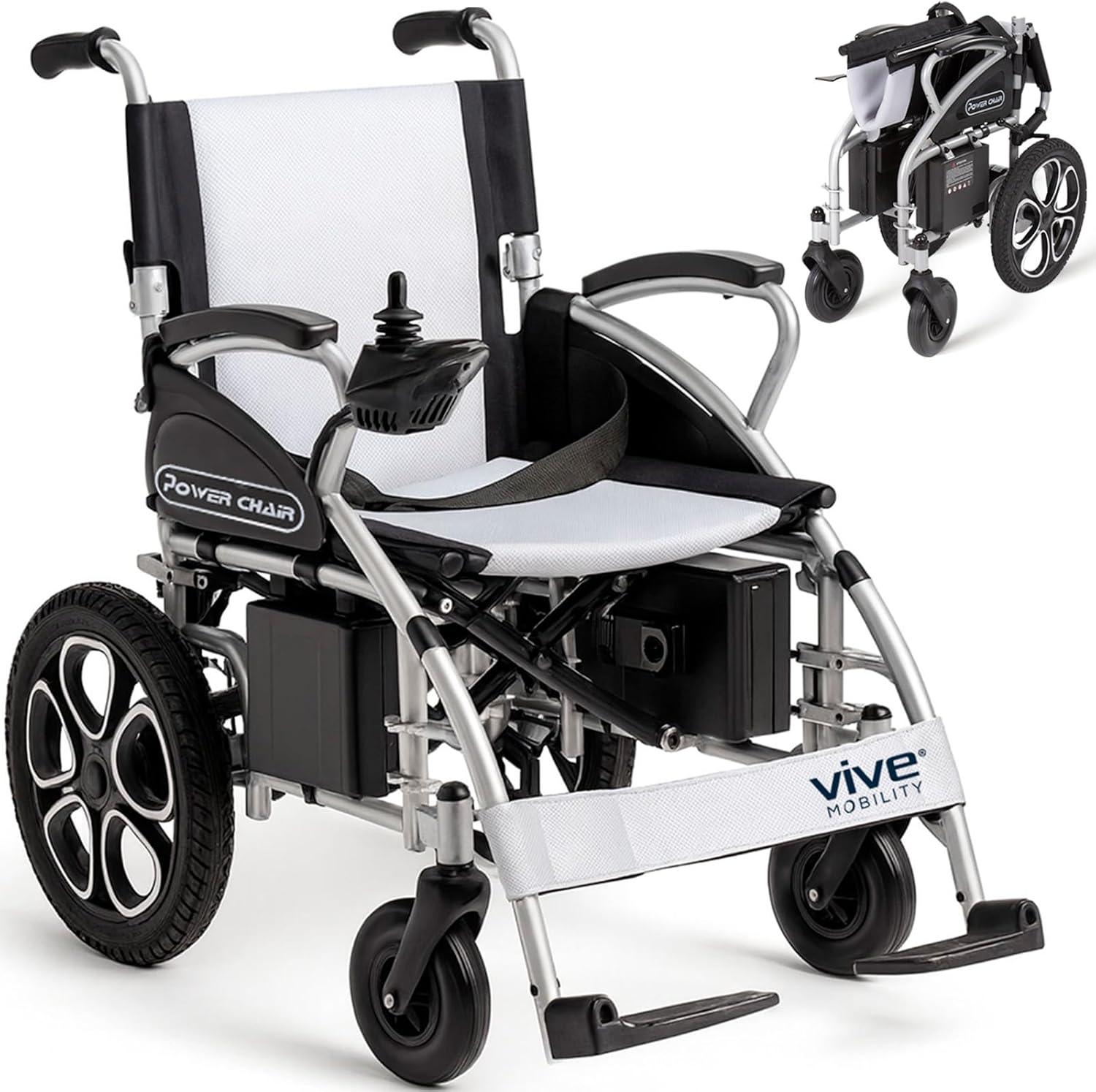 Vive Folding Electric Wheelchair - Foldable Wheel Chair, Narrow Power Scooter, Heavy Duty, TSA Approved - Compact Size for Seniors Adults - Battery Portable, Folds, Shock-Absorbing (16 x 30 x 28.5)