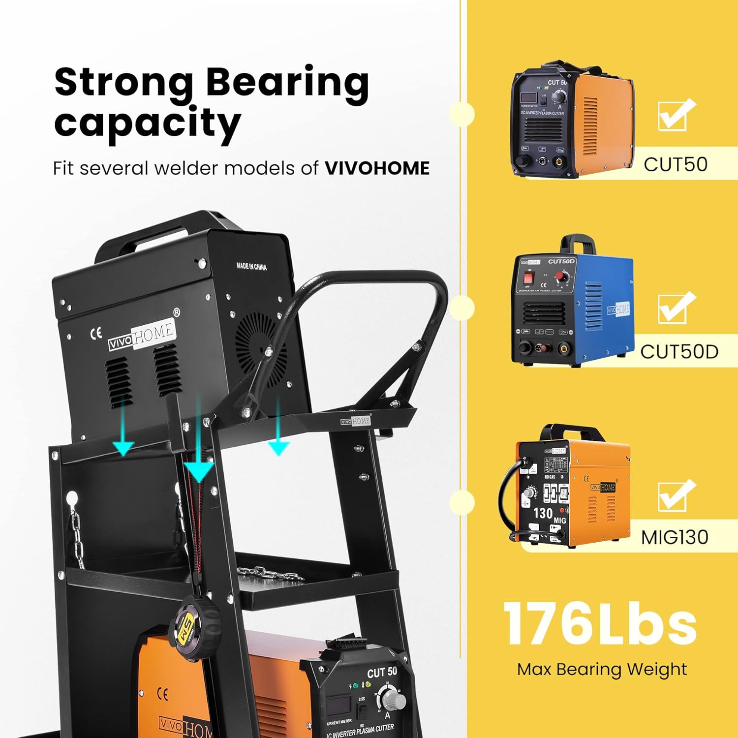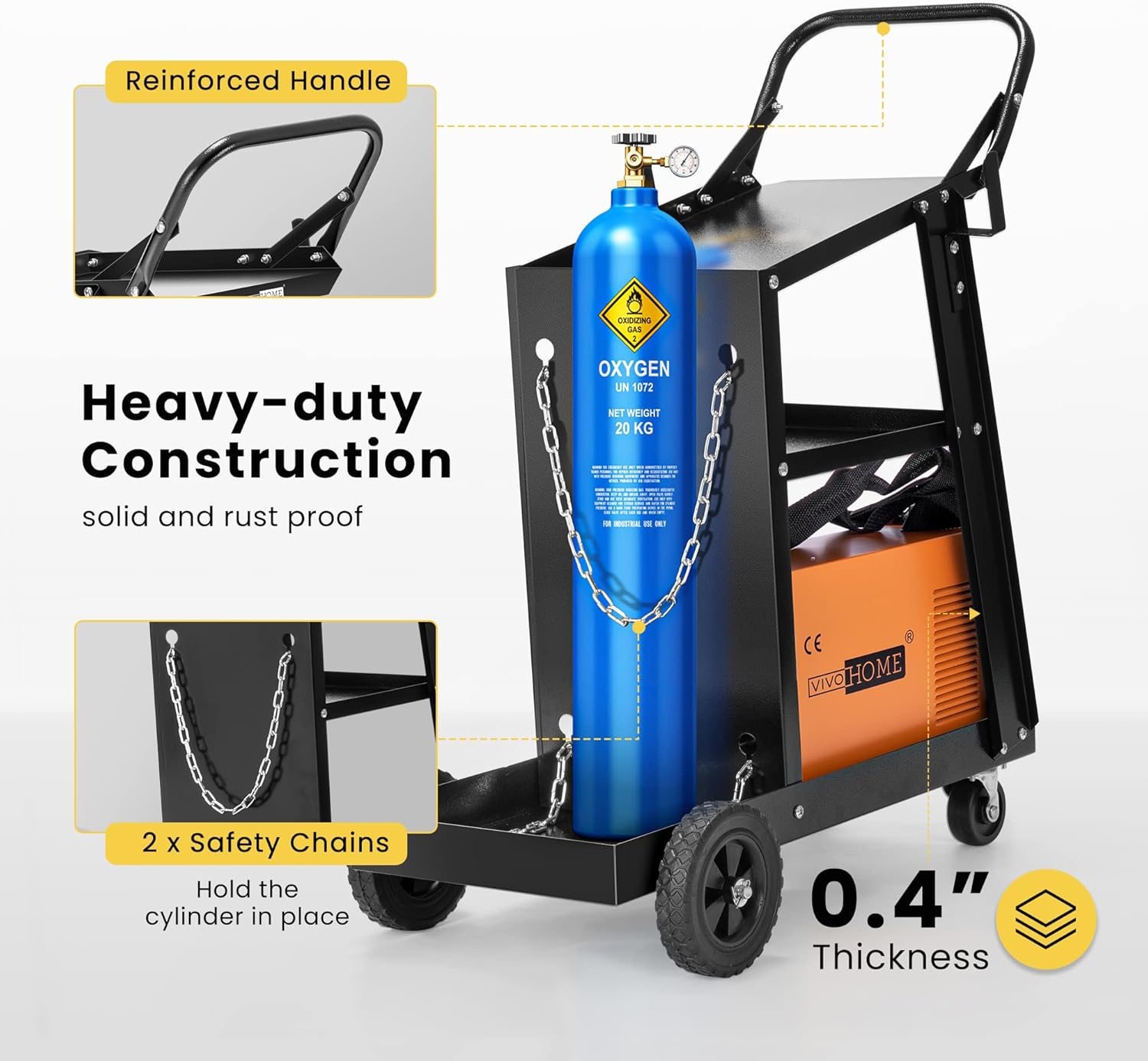 VIVOHOME Iron 3 Tiers Rolling Welding Cart with Upgraded Wheels and Tank Storage for TIG MIG Welder and Plasma Cutter Black