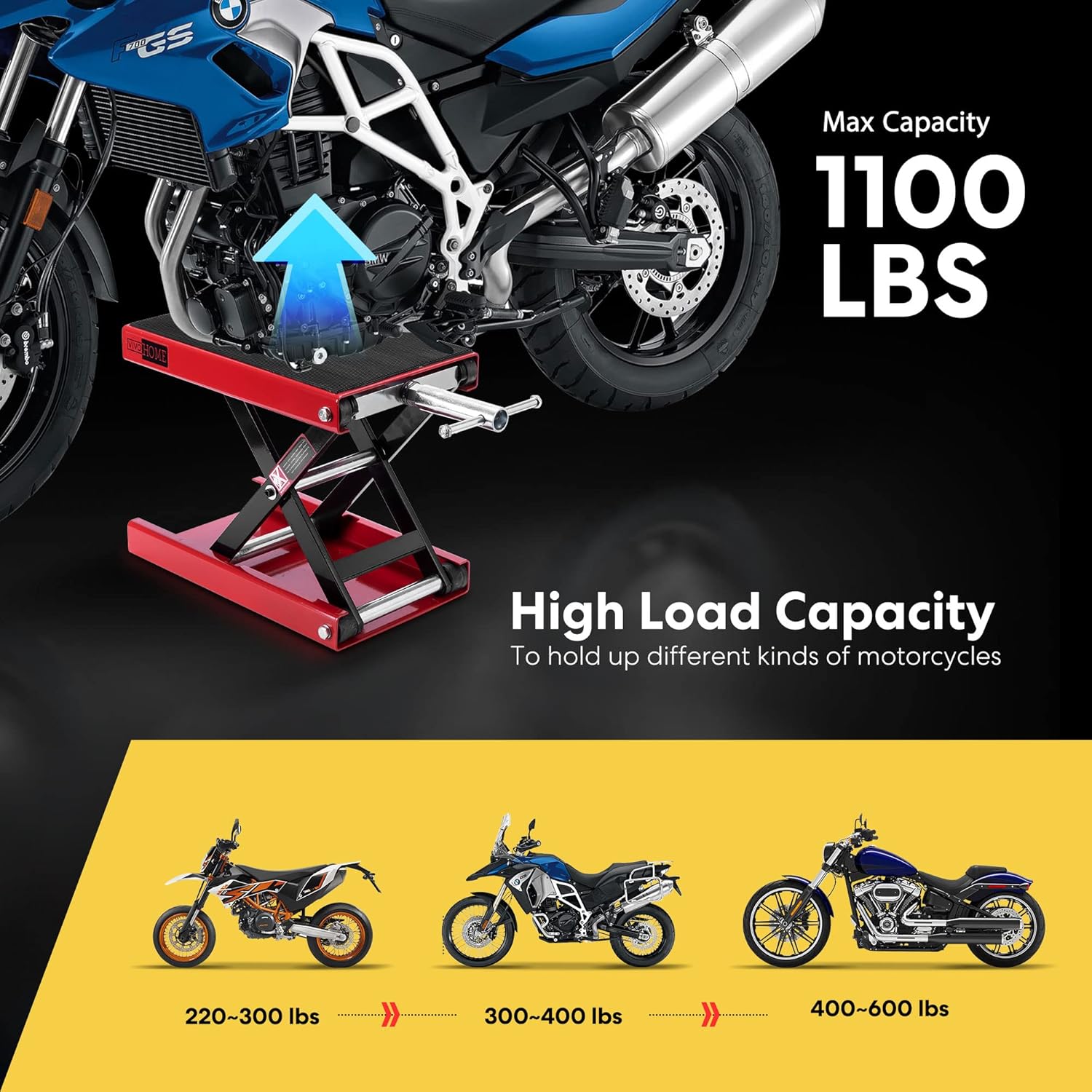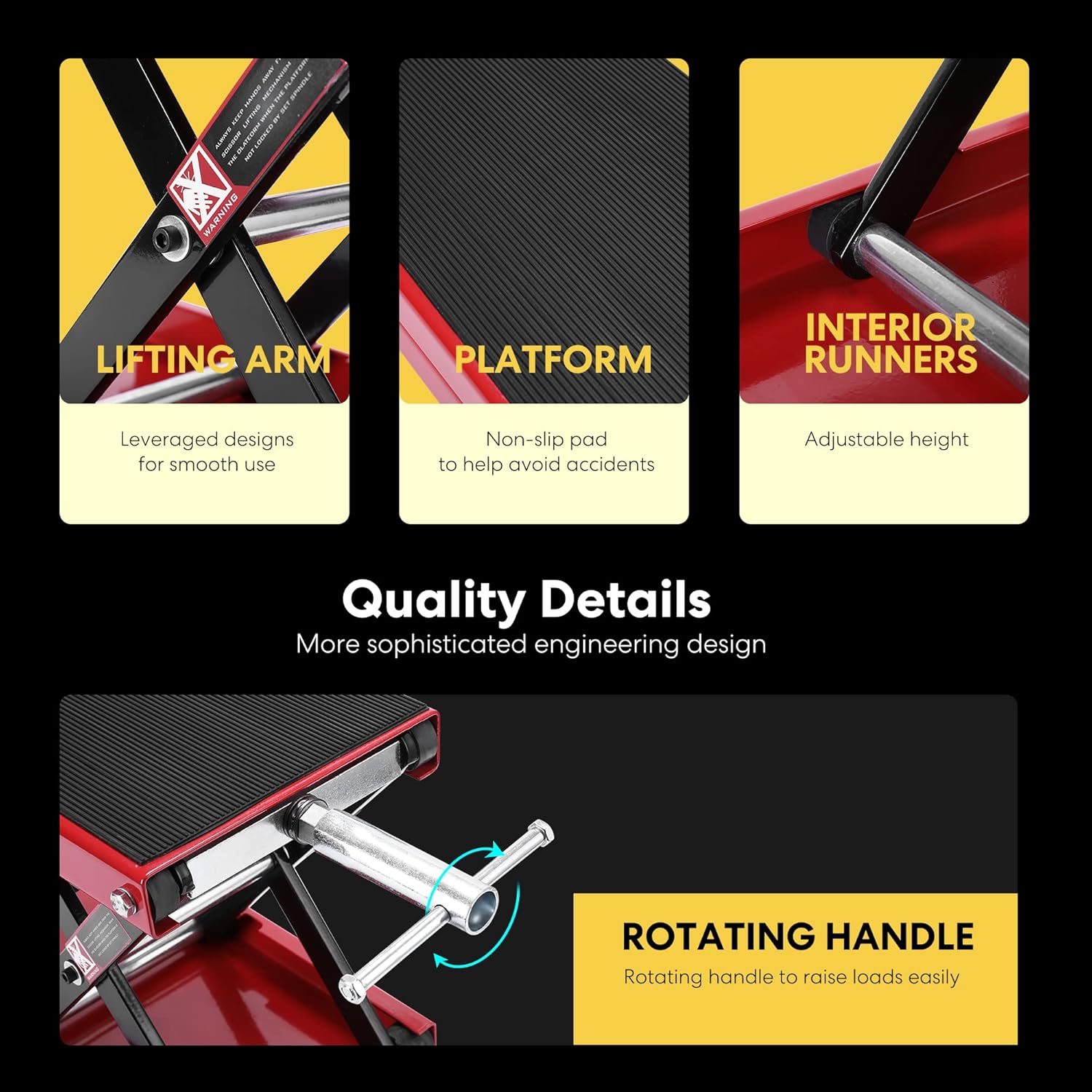 VIVOHOME Motorcycle Lift Scissor Jack Steel Wide Deck Hoist Crank Center Stand 1100 LBS Capacity for Motorcycles, ATVs, Dirt Bikes Red