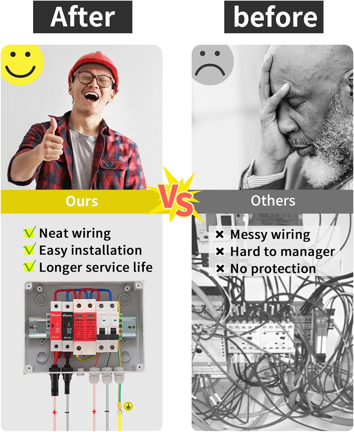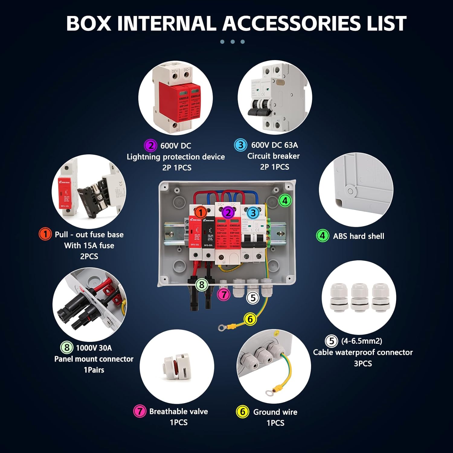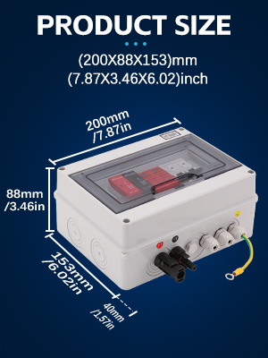 VOU 600V Solar DC PV Combiner Box for Solar Panel,1 String with Lightning Arrester Connector for On/Off Grid Solar Panel System,1 Input 1 Out 15A Rated Current Fuse,63A Circuit Breaker,Waterproof