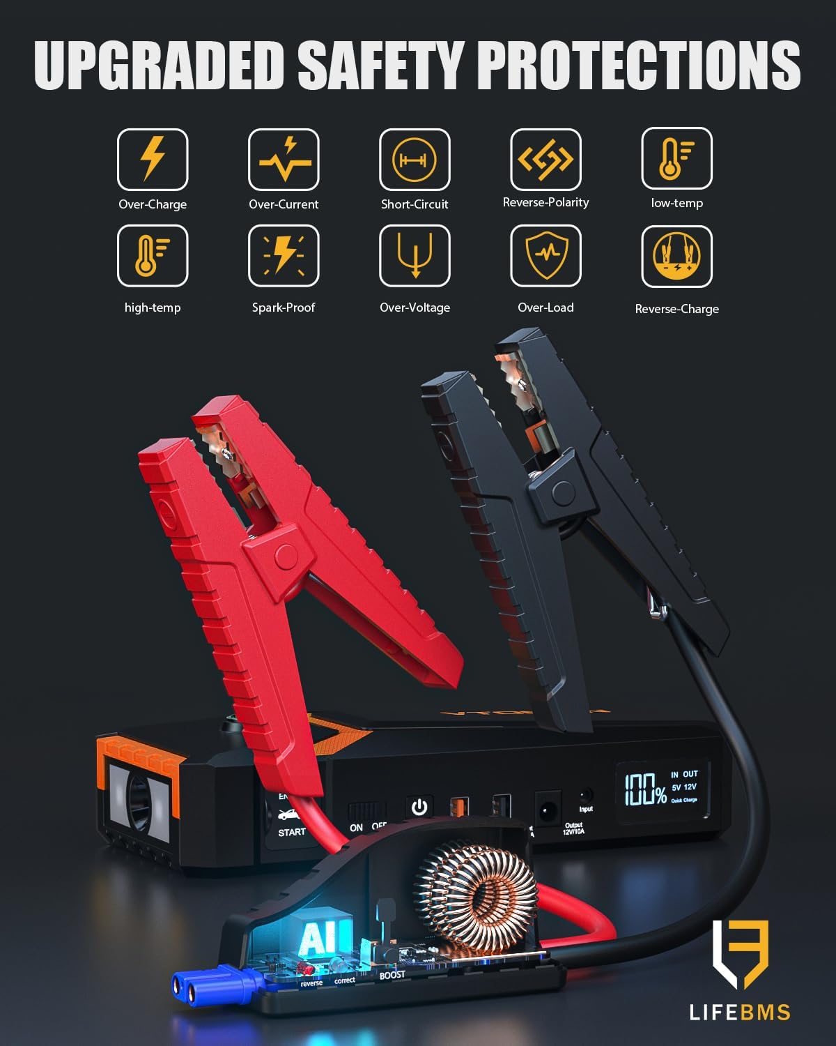 VTOMAN V8 Pro 3000A Jump Starter, Car Battery Charger Jump Starters for Up 8.5L Gas and 6.5L Diesel Engines, 12V Auto Lithium Battery Booster Pack, Portable Jump Box with Jumper Cable LCD Display