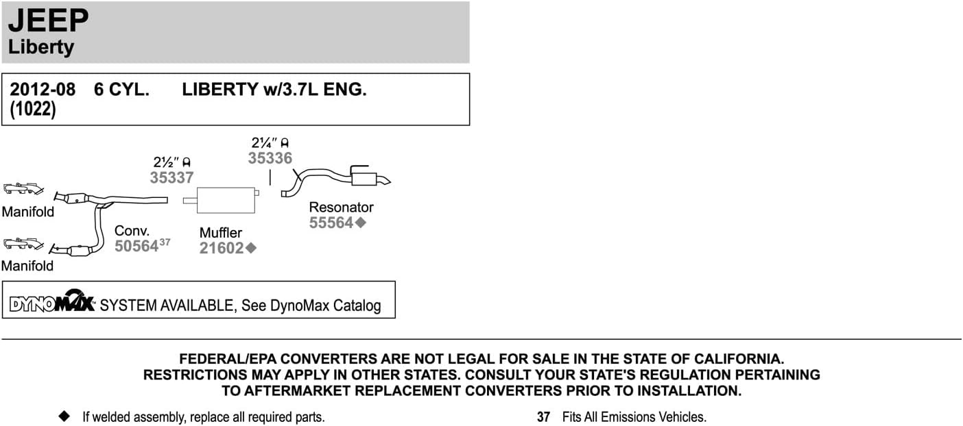 Walker 55564 Direct Fit Exhaust Resonator and Pipe Assembly 2.25" Inlet (OD) 2.5" Outlet (OD) for Chevrolet Tahoe