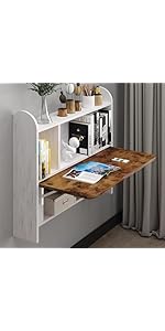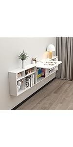 - The floating wall desk has floating design which can free up floor space and folding down when not in use.