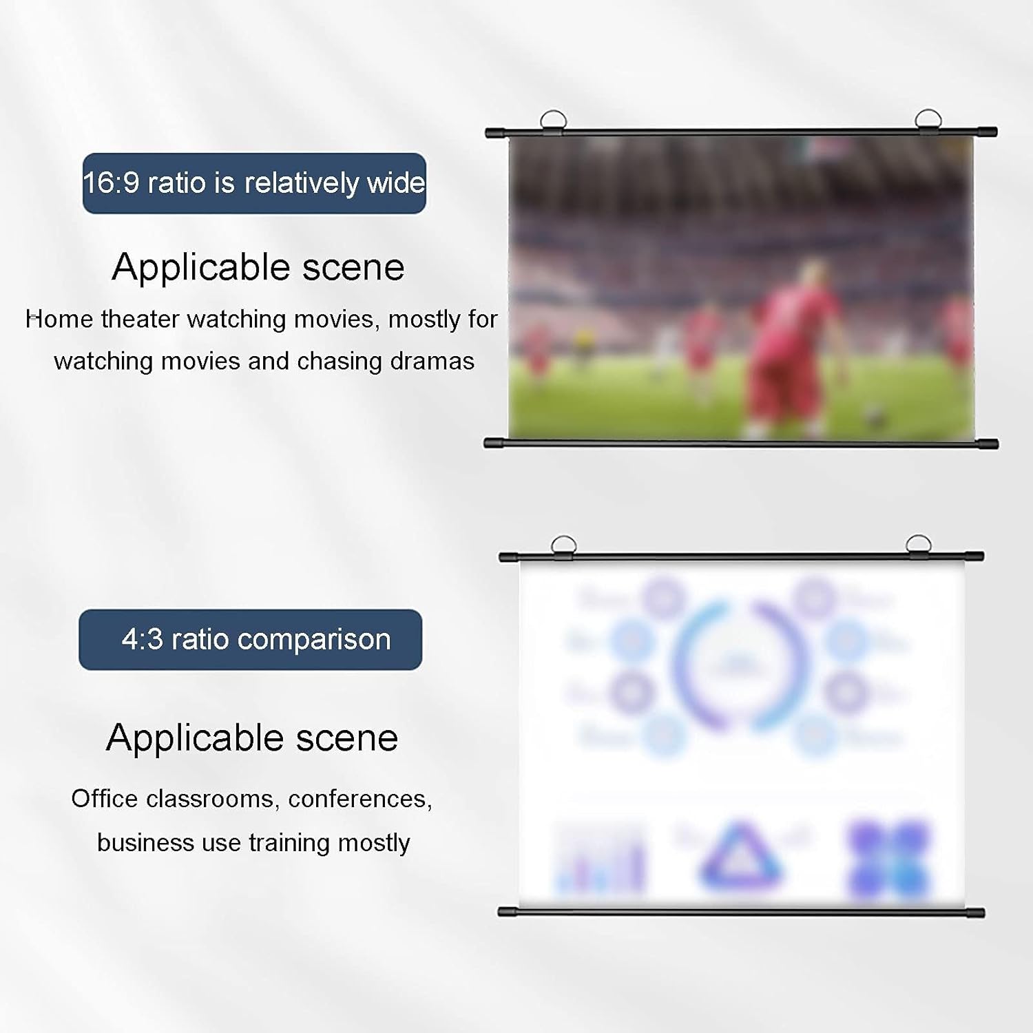 The Wall-Mounted Portable Projection Screen is the perfect solution for both personal and professional use. Whether you are hosting a movie night at home, delivering a business presentation, or enjoying an outdoor event, this HD roll-up screen ensures a superior viewing experience. Available in 4:3 and 16:9 aspect ratios, it offers a wide 178° viewing angle, providing clear, bright images from virtually any angle.