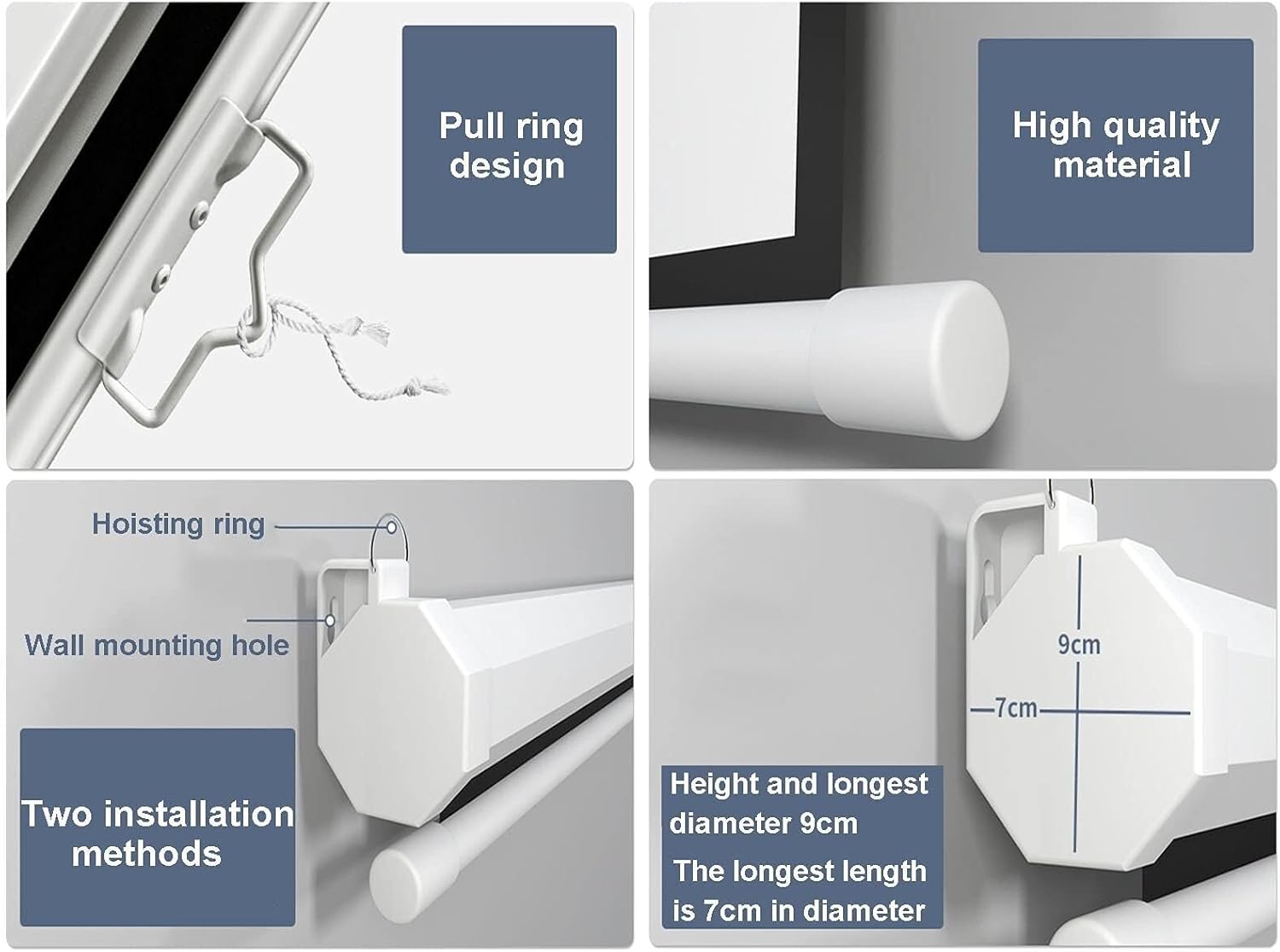 Not only is this screen practical, but it is also space-efficient. The retractable design allows for easy storage and concealment when not in use, keeping your living or workspace clutter-. Whether you're enjoying movies, gaming with friends, or delivering a professional presentation, the projector screen is the perfect addition to any setting.