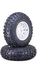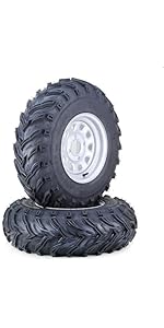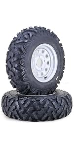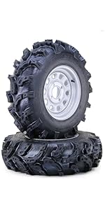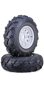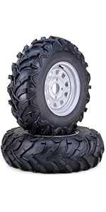 WANDA 25x8-12 Solid Mud ATV Tires and Wheels Assembly with 4-110 PCD 5+2 Silver Rims, SET 2