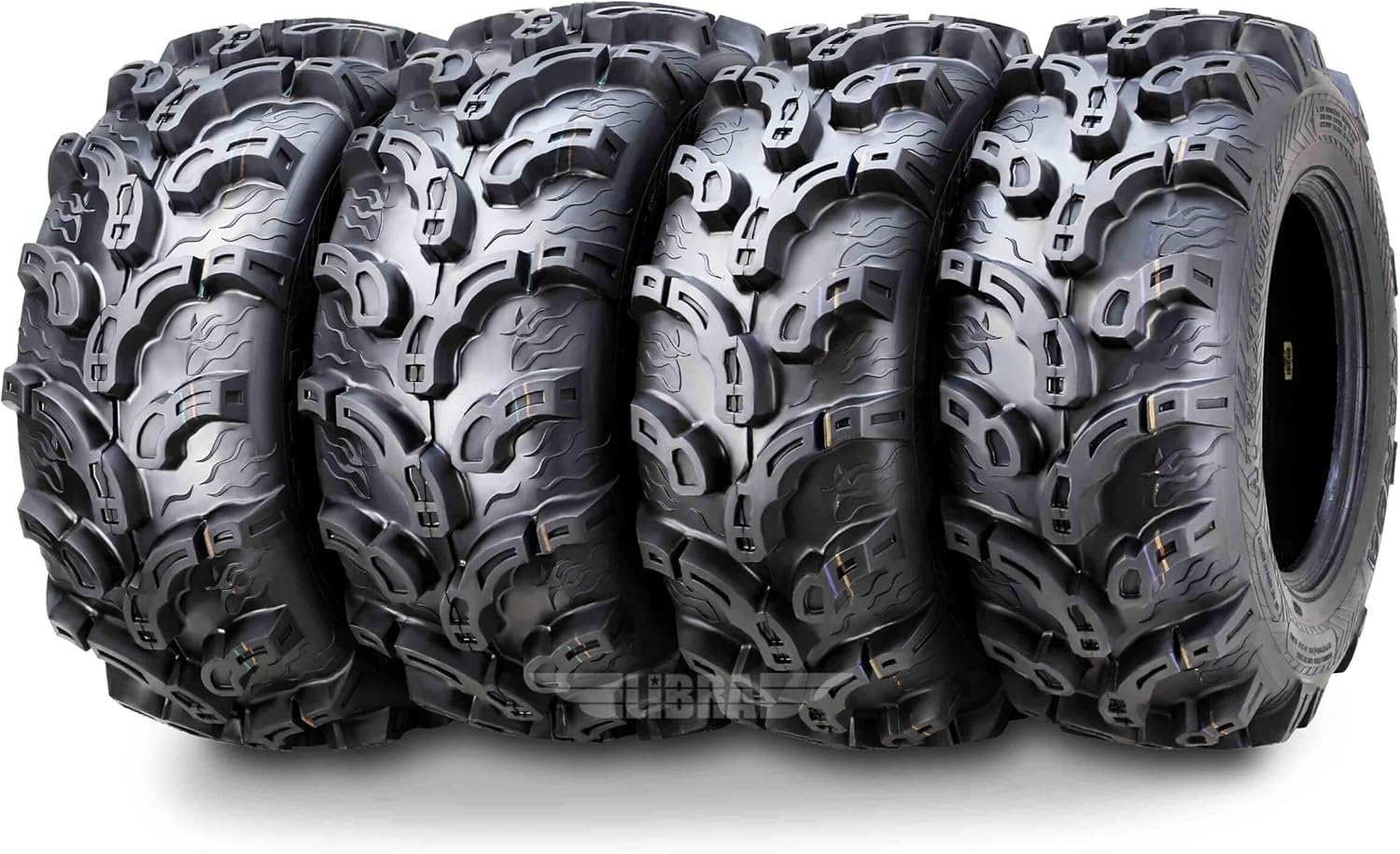 Complete set (2 front + 2 rear) tires for replacement of 04-07 Suzuki EIGER 400 VINSON 500 TWIN PEAKS 700. 1.03" super lug! Aggressive, ultra deep self cleaning tread design for superior mud traction. Shoulder lugs for added traction and improved appearance, Riding cleat for smoother trail riding. Heavy 6 ply rated nylon construction resists punctures and abrasions. Tires only, wheels not included