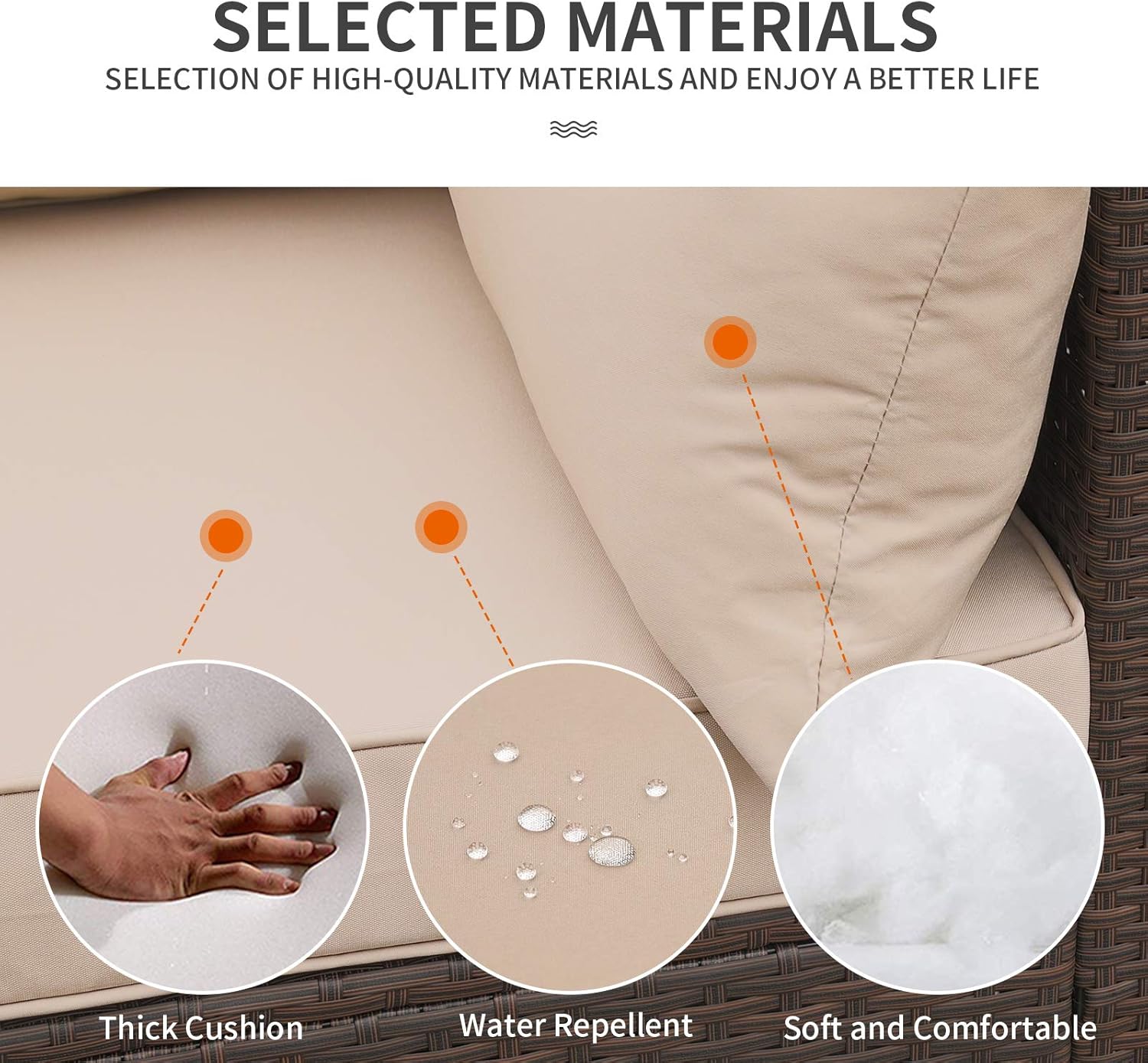 This outdoor wicker sofa comes with water repellent, UV-resistant wicker, and fabric, which are the best choice to decorate your outdoor scenes. You can enjoy your time with your family and friends on the patio, garden, deck.