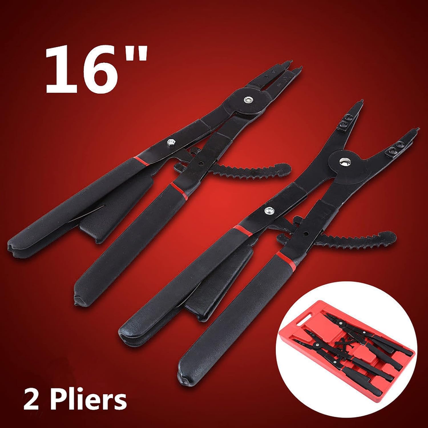 Watris Veiyi 2PCS Heavy Duty Circlip Pliers, 16" Snap Ring Pliers Set, Internal External Snap Ring Pliers, with 0°15°45°90°tips, to install and uninstall the snap rings