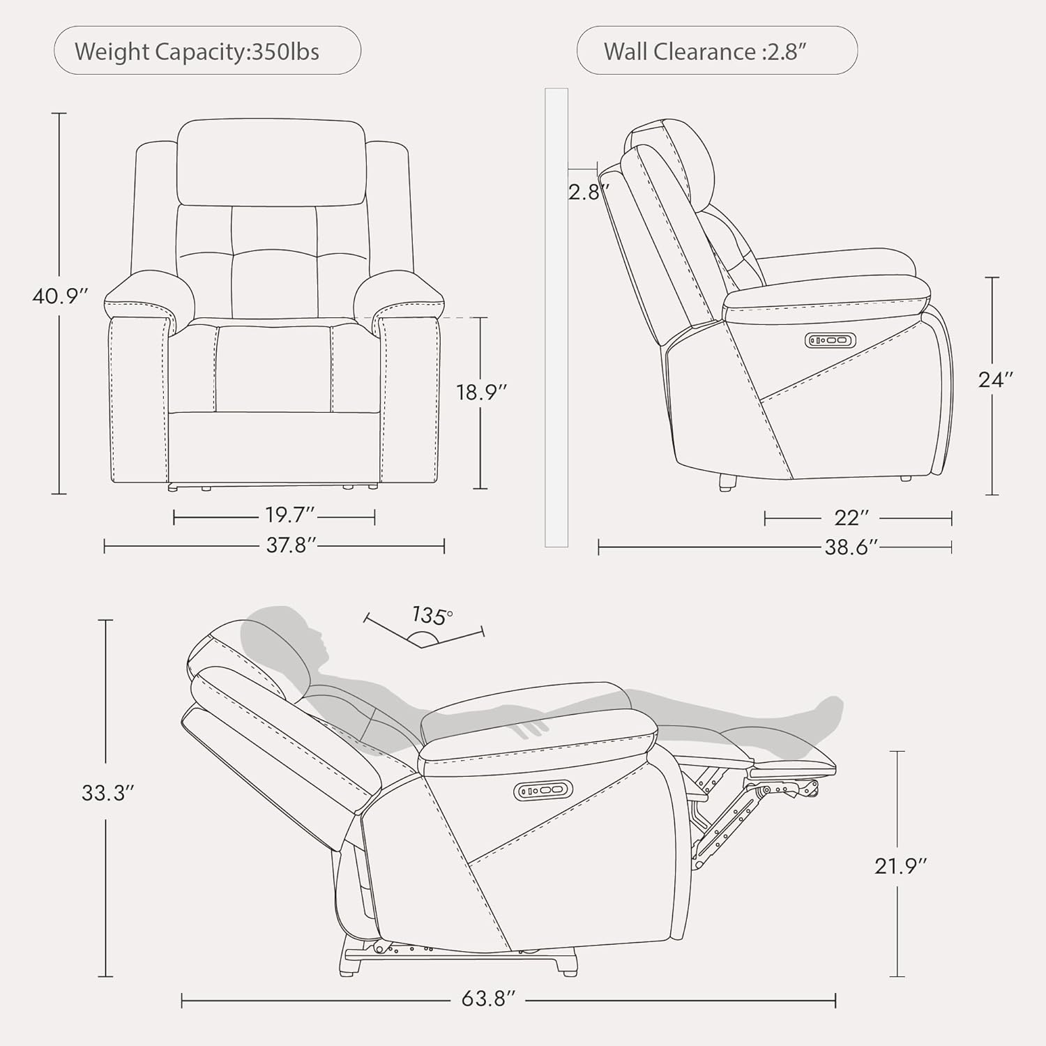 The wall-hugging recliner for small spaces and RVs requires only 3 inches of clearance from the wall when fully reclined. The one-touch "HOME" button instantly returns the chair to its upright position - no leaning forward or manual adjustment needed.