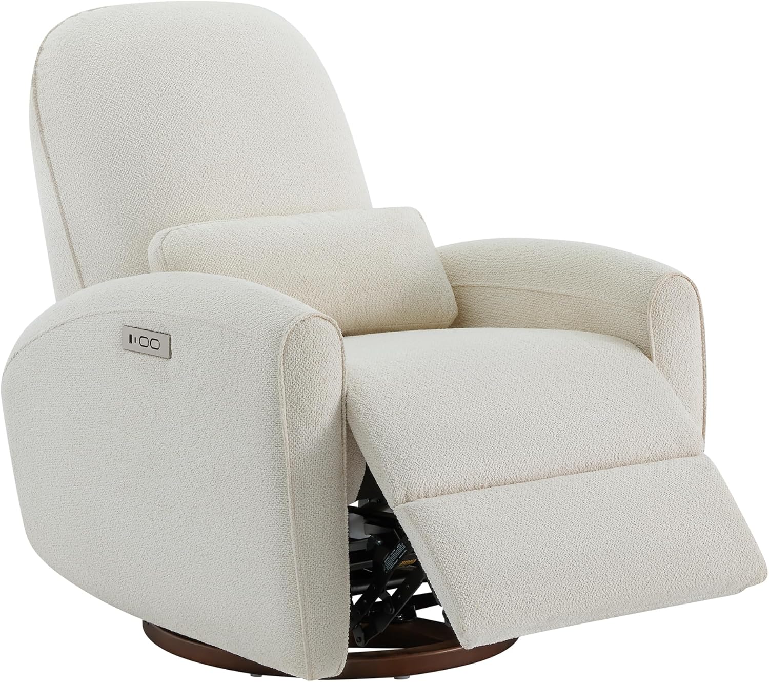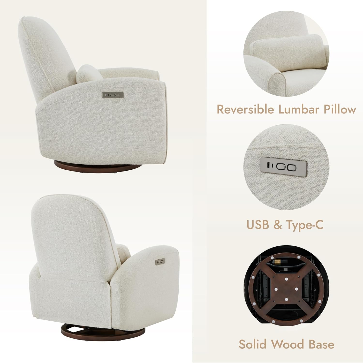 Watson & Whitely Power Recliner Chairs, Swivel Nursery Recliner Glider with Pillow Lumbar Support & Solid Wood Base for Living Room, Cream