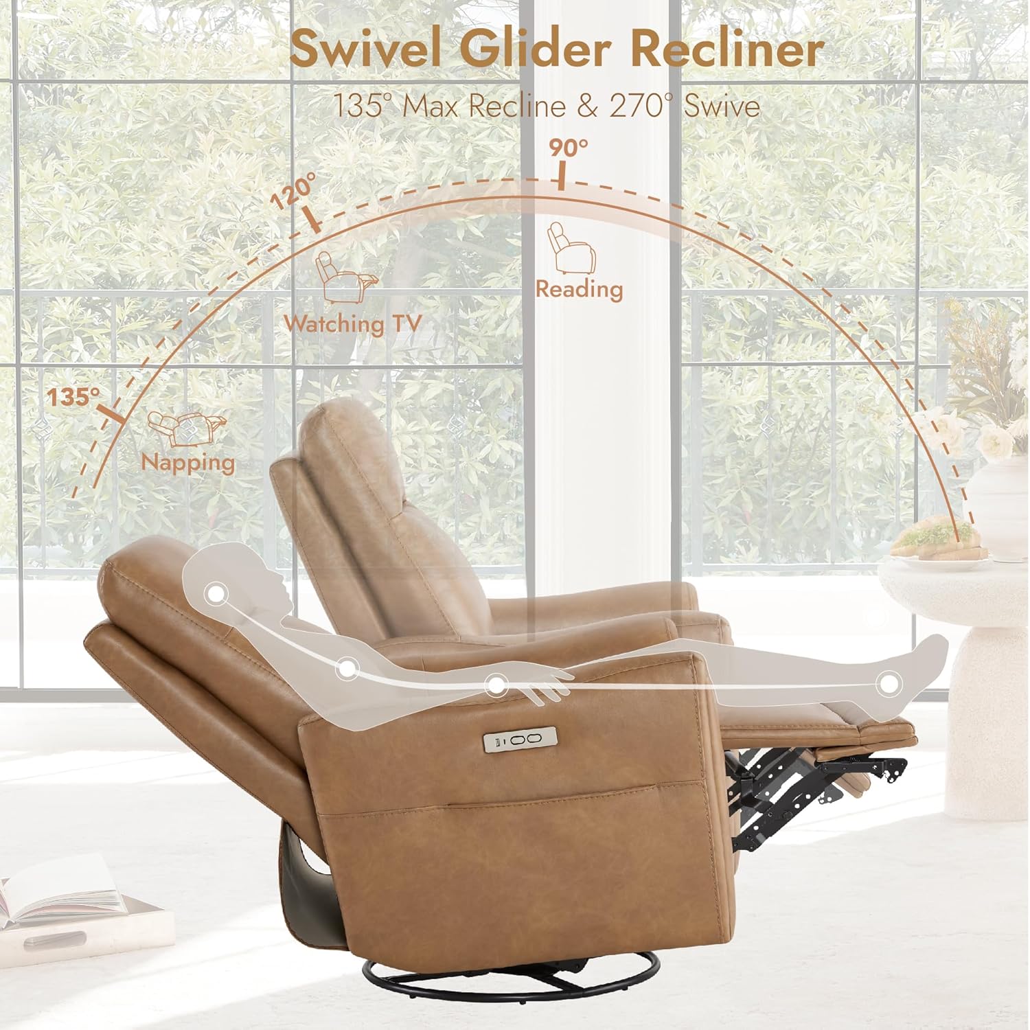 Watson & Whitely Power Swivel Rocker Recliner, Reclining Chair with Memory Foam for Living Room, Faux Leather RC011 (Camel)