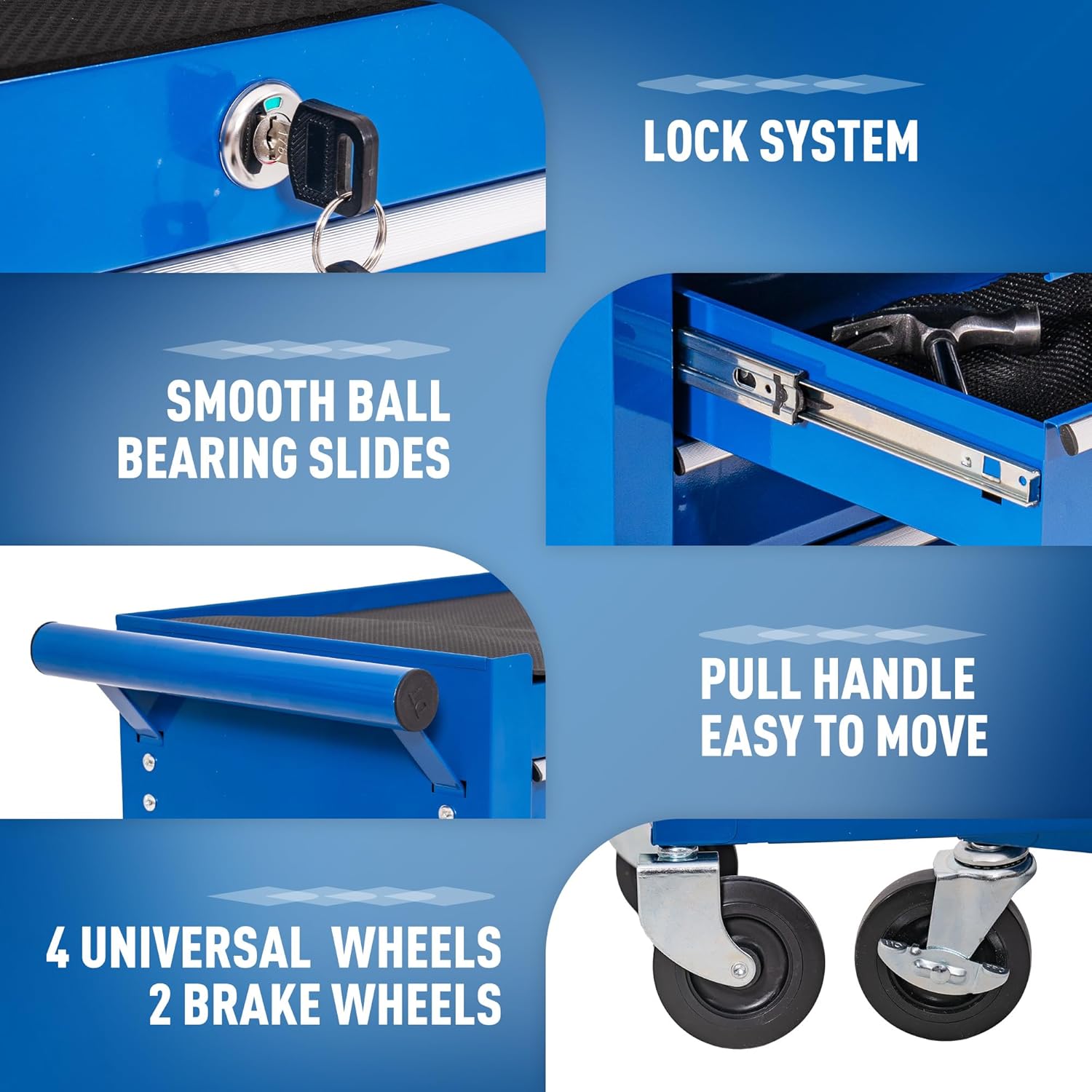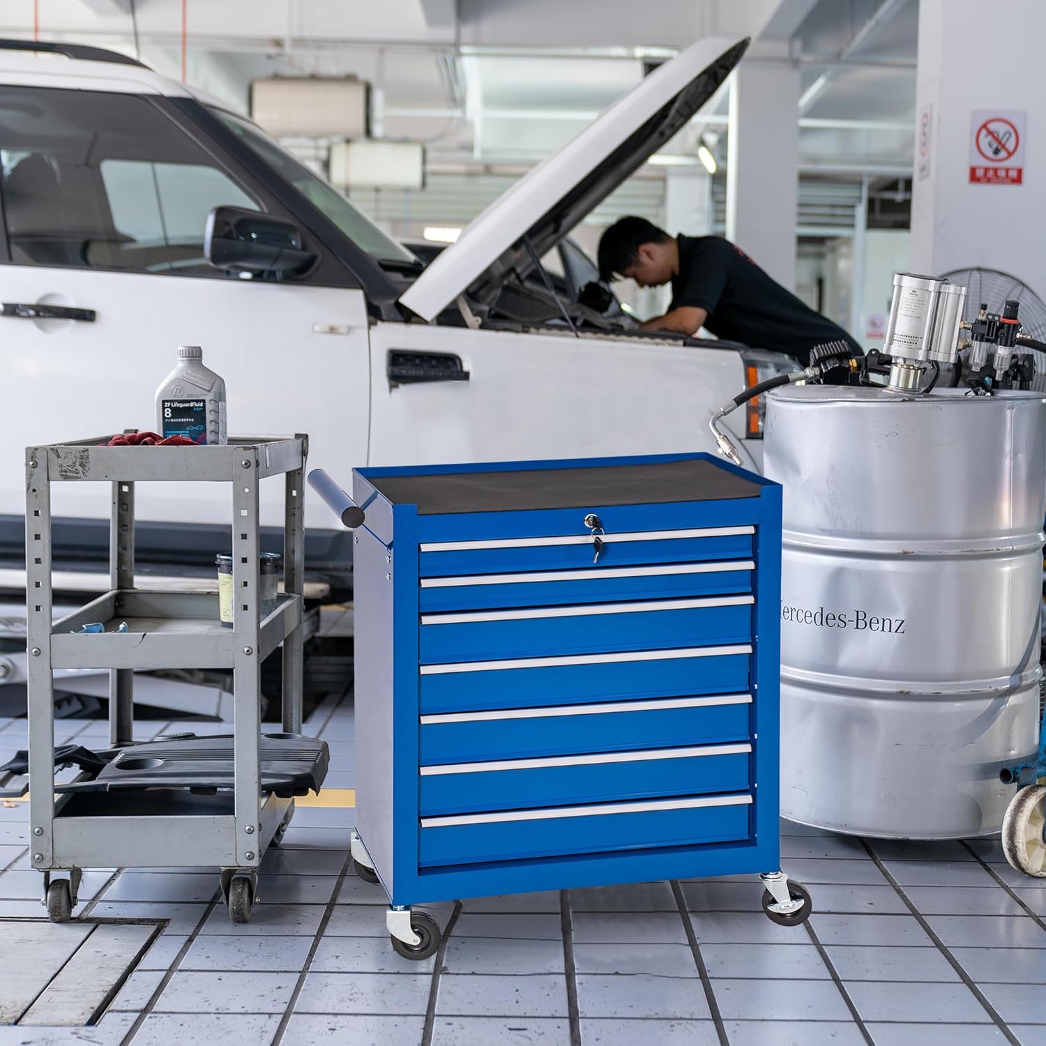 WAYTRIM 7-Drawer Metal Rolling Tool Chest with Wheels, Tool Storage Cabinet with Locking System, Toolbox with Wheels for Repair Shop, Garage, Warehouse, Workshop, 7-Drawer, Blue