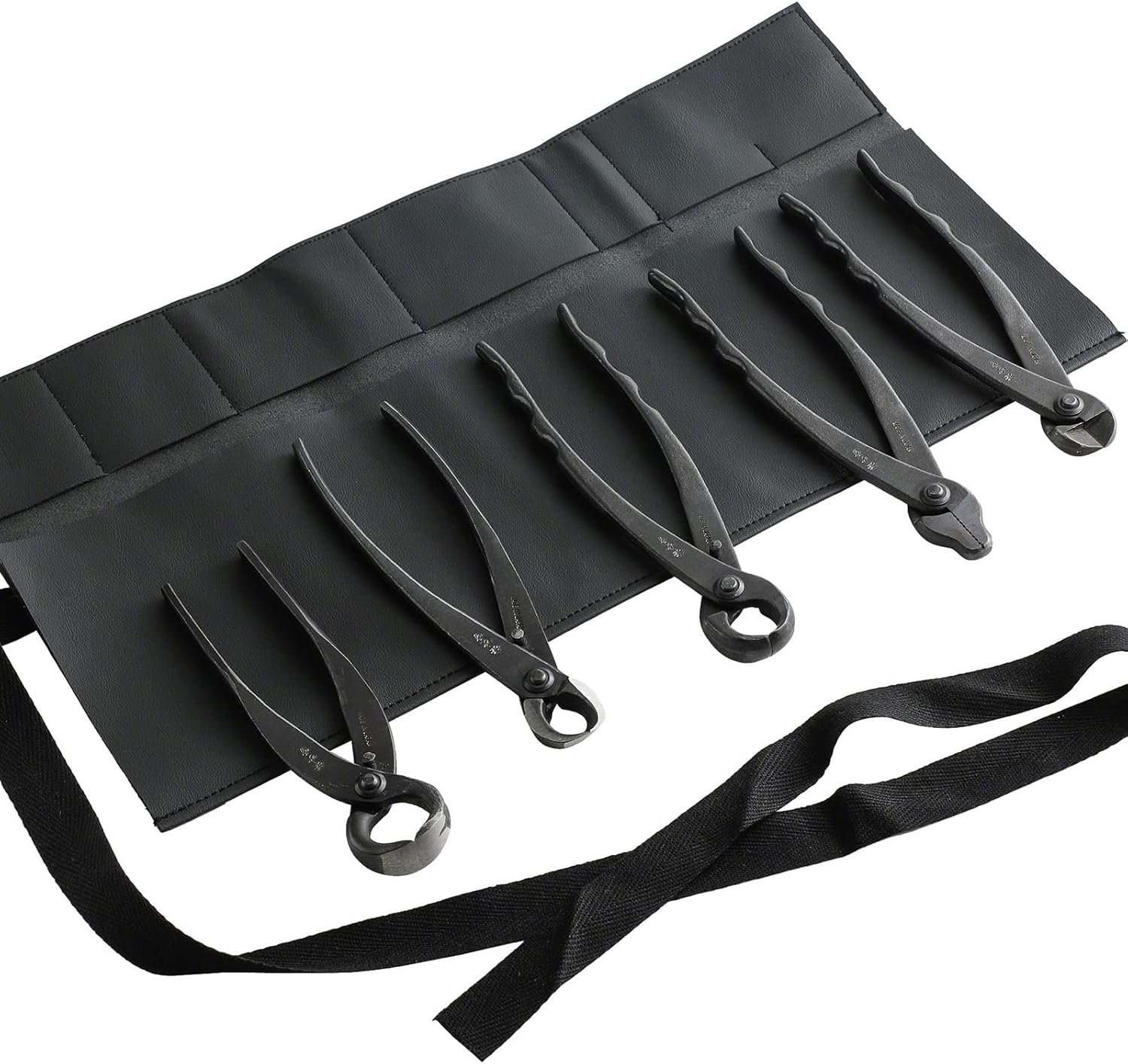 Wazakura Made in Japan 5 PCS Bonsai Cutter Tools Set with Roll Bag: Concave Branch Cutter, Knob Cutter, Jin Plier, Wire Cutter, Root Cutter. Bonsai Tool Kit - 5PCS Bonsai Cutter Set with Case
