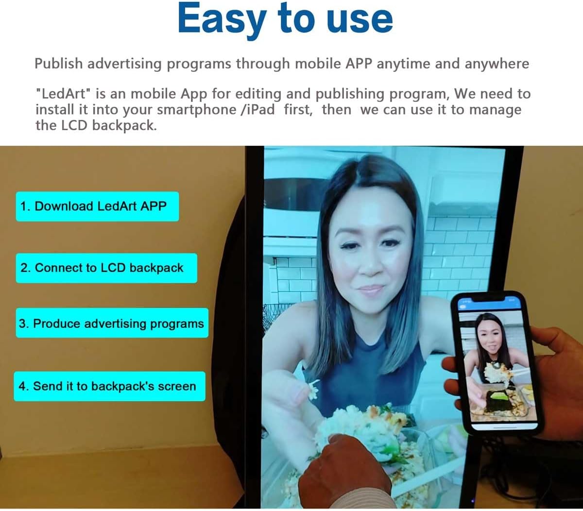 Share mobile phone screen to LCD backpack screen in real-time: Support