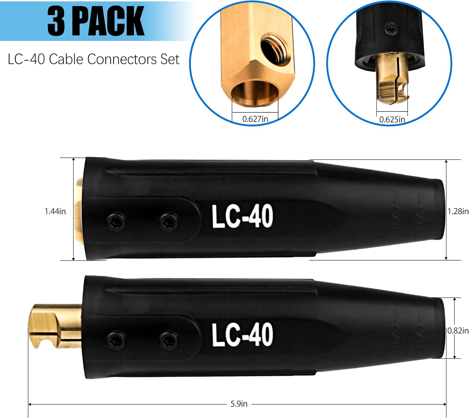 Welding Lead Connectors, 3 Pack LC-40 Welding Cable Connector, Positive Cam Twist-Lock Insulated Connector Pair(Male/Female), Welder Lead Connectors, Welder Cable Connectors, Welding Lead Ends