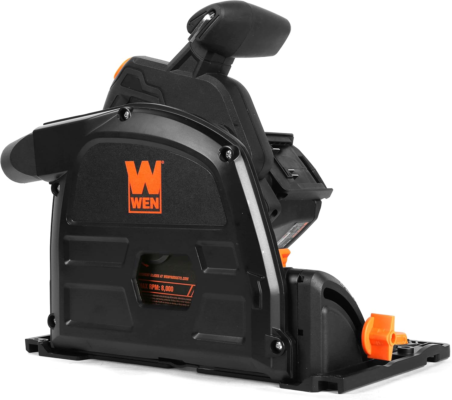 Remember when your saw stayed on the right track? Keep your cuts on the straight and narrow with the WEN 20V Max Cordless Track Saw. The WEN Track Saw provides users the same results as a table or panel saw in a compact and portable package. Simply lay the track (not included – models CT9502, CT9110) along the desired surface for a clean and smooth cut. The WEN Track Saw is the perfect companion for ripping plywood, trimming doors, building furniture, and any other application needing long, precise cuts. Our powerful variable-speed motor rotates the 6.5-inch blade from 2000 to 5500 times per minute, letting you power through even the hardest of woods. Bevel the saw anywhere from -1 to 47 degrees depending on the needs of the task at hand. Set the depth gauge anywhere from 0 to 2.1 inches to control how deep the saw plunges. The 12 x 6.75-inch base features precision grooves that let the saw glide smoothly along the track. However, the saw can also exist on its own as a plunge saw, relying on its flat base for maximum stability and precision. Easily switch between three different blade settings: one for scoring cuts that go 1/8-inch deep, one for full plunge cuts, and one to simplify blade changes. The back-mounted dust port allows for attachment to your favorite dust collection system to control sawdust and limit cleanup. Simply attach your dust collection device of choice and start sawing. The dust port adapter allows the unit to still stay flush against walls, making this an ideal saw for flooring trim cuts. The two included 4.0 amp-hour lithium-ion batteries deliver consistently powerful performance at any level of charge, feature onboard LED charge gauges, and are cross-compatible with the entire WEN 20V Max Cordless Lithium-Ion Power Tool line. And, because it’s a WEN product, your WEN 10-Amp Plunge Cut Circular Track Saw comes backed by a two-year warranty, a nationwide network of skilled service technicians, and a friendly customer helpline, all to make sure you remember WEN. A minimum of two 4Ah batteries is recommended.