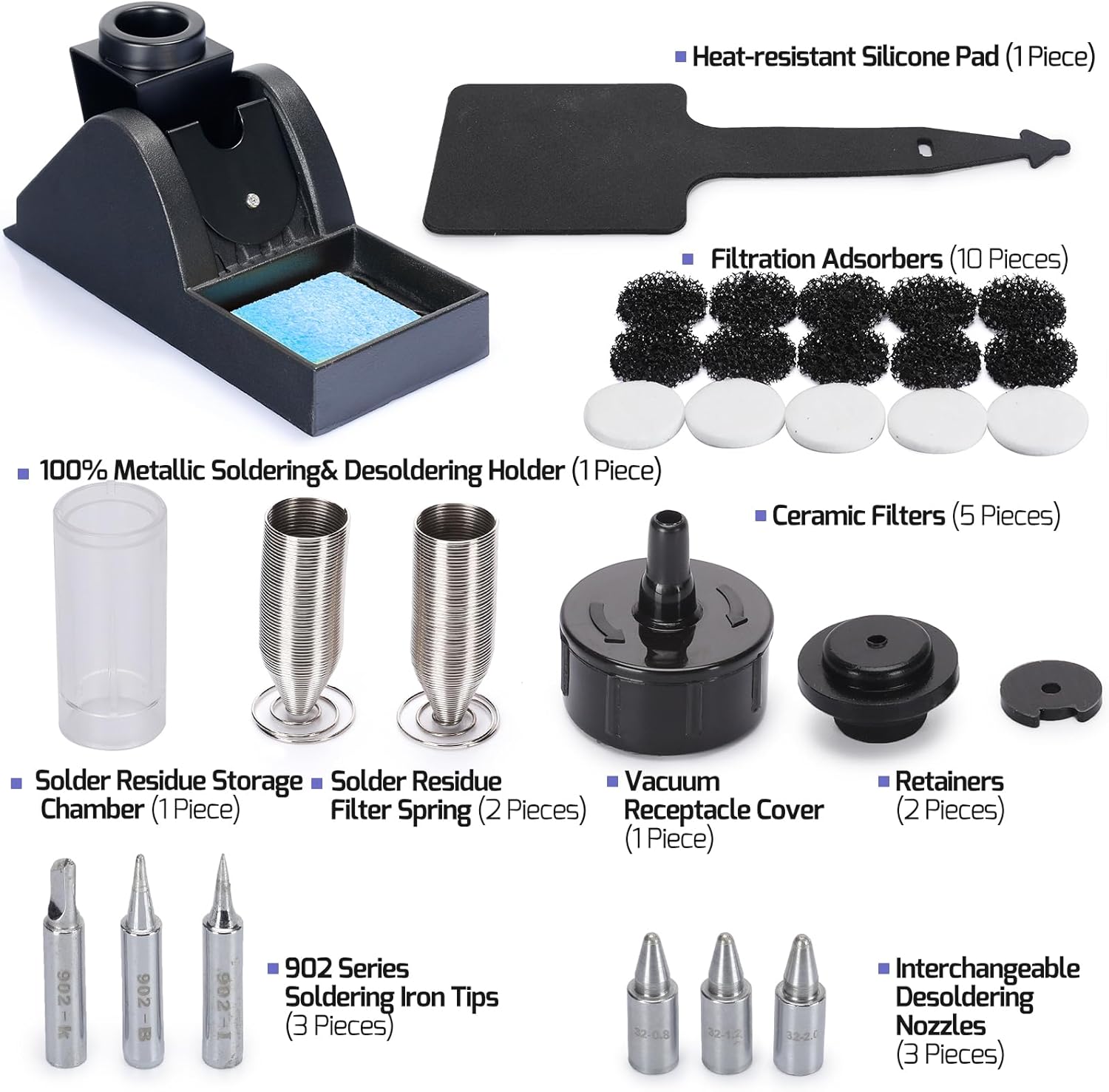WEP 948D III Upgraded 2-IN-1 ESD Safe Soldering Desoldering Station with Fast-Heating Desoldering Gun & Soldering Iron, Sleep Mode, Automatic Shutdown, Temperature Calibration with 31 Pcs Accessories
