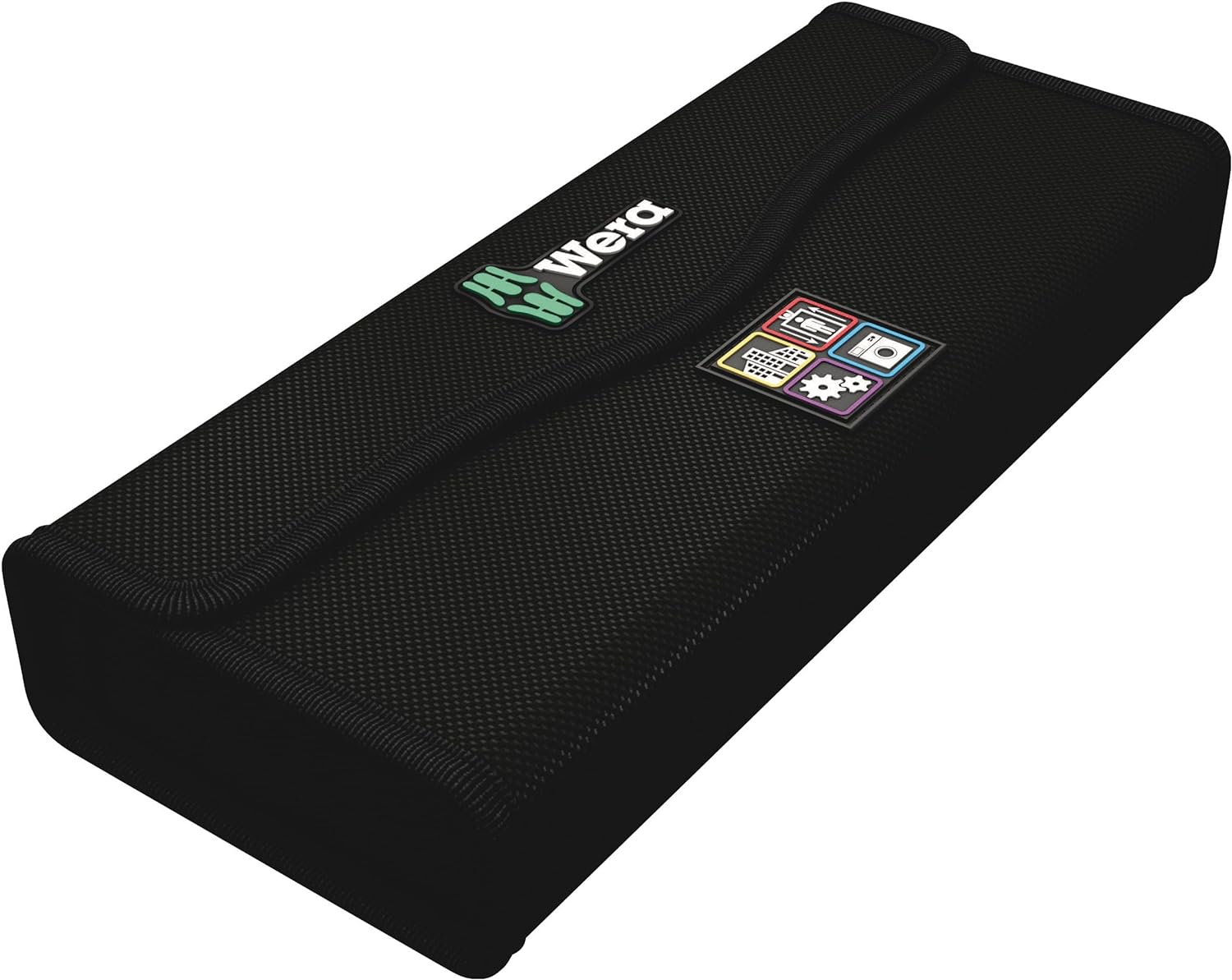 Compact tool set with the 35 most important screwdriving tools for maintenance work both indoors as well as outdoors. Includes VDE holder with 12 VDE blades; 1 JOKER double open-end wrench with holding function, limit stop, small return angle and extremely gripping teeth; the incredibly fast ¼” Zyklop Speed ratchet and accessories; 8 manual and power tool sockets, sizes 5.5-13, 1 universal bit holder; 7 bits in a length of 25 mm; 1 screw gripper for firmly holding screws; 1 voltage tester 247; textile box, very robust and durable; can be positioned upright in the workshop shelf for convenient storage; additional surface protection thanks to the textile outer material; low weight and volume for simplified mobility.