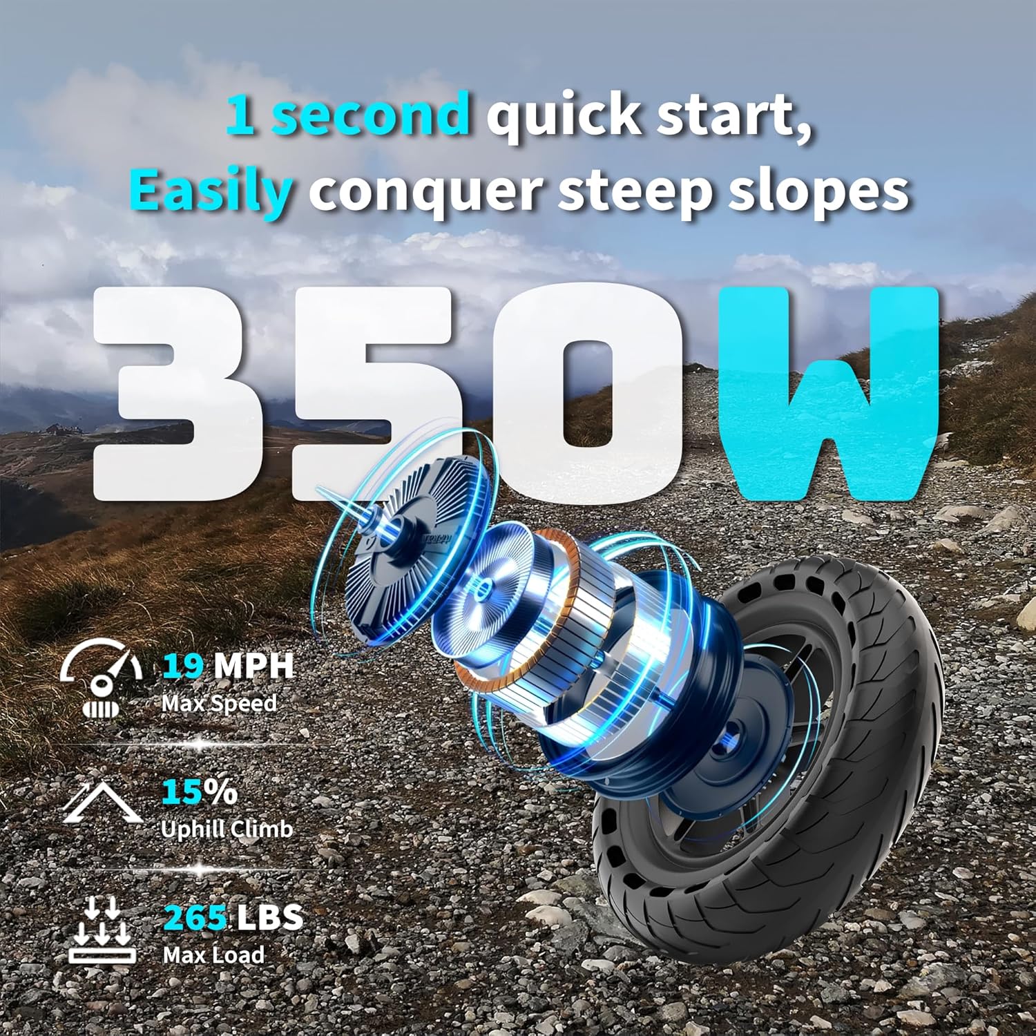 WERHY Electric Scooter with Seat & Basket, 350W Motor, 8.5'' Solid Tires, Top Speed 19mph, Max 16/27 Miles Ranges, Foldable E-Scooter with Suspension, Digital Display