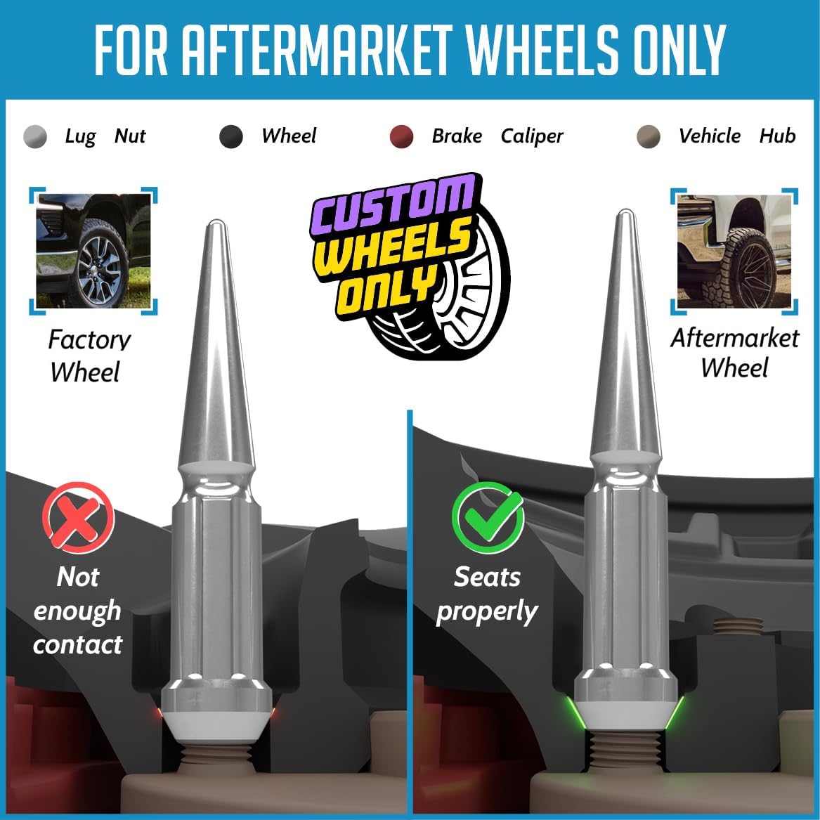Wheel Accessories Parts 20 Pcs M12x1.5 12x1.5 Thread Spike Spline 4.40" Long Lug Nuts Chrome 7/8" & 13/16" Hex Fits Chevy Blazer S10 | GMC Jimmy S15 | Bronco Sport