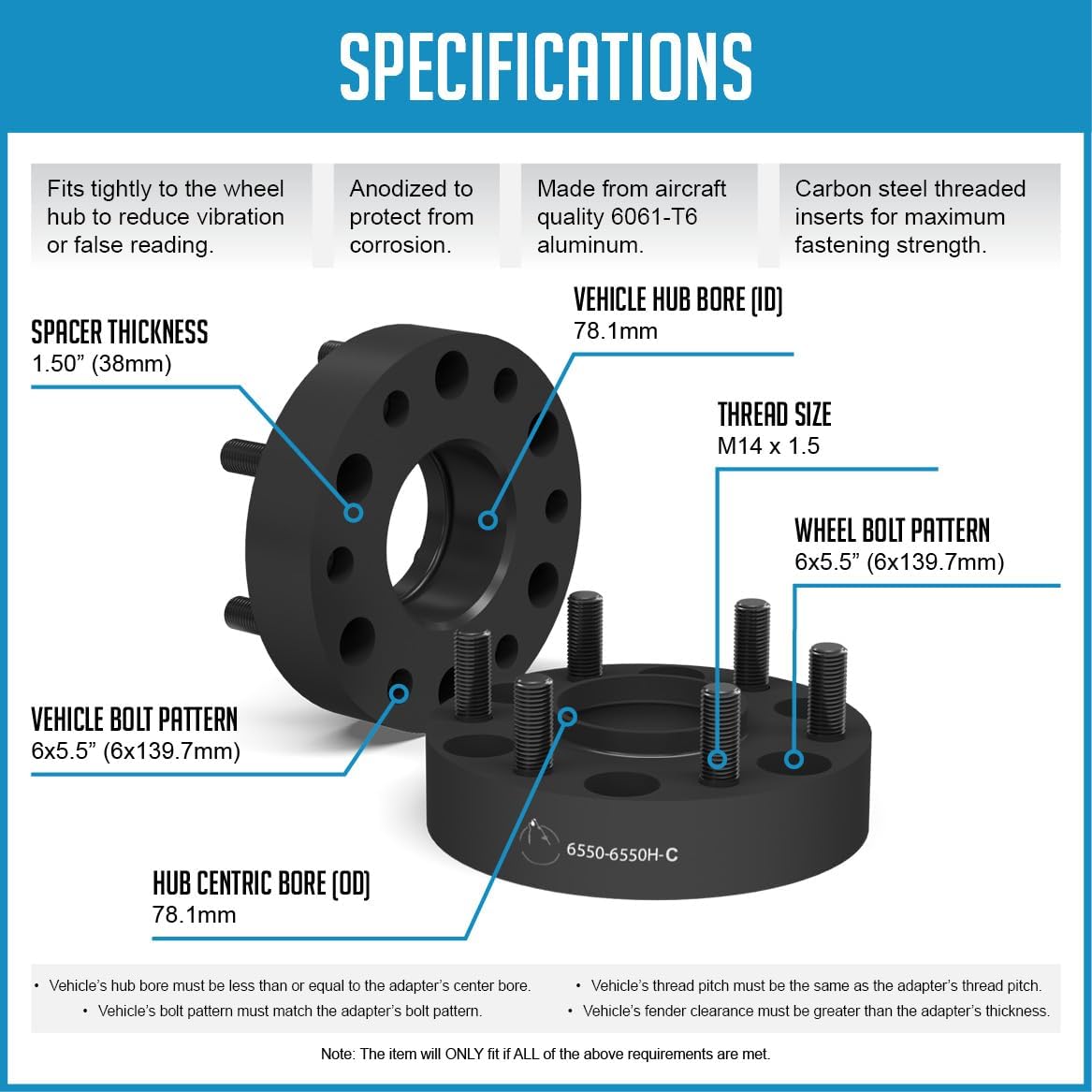 Wheel Accessories Parts 4 Pcs Hub Centric Wheel Spacers Adapters 6x5.5 6x139.7mm 1.50 Inch Thick 78.1mm Hub M14x1.5 14x1.5 Thread Stud Fits Chevy Silverado 1500 Colorado Tahoe | GMC Sierra 1500 Yukon
