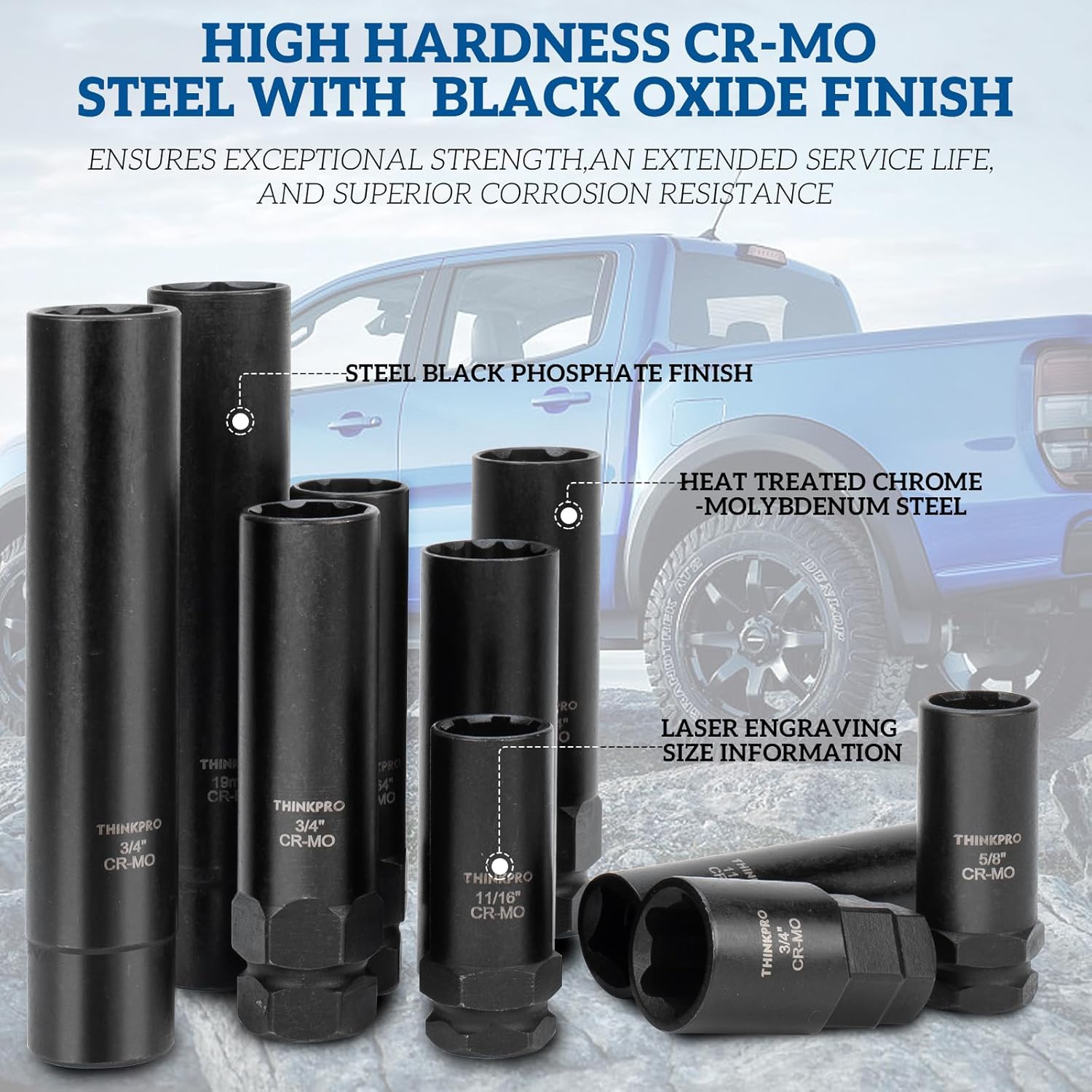 THINKPRO Bolt & Screw Extractor Set,Lug Nut Remover,Twist Socket Tool,Wheel Lock Removal Kit