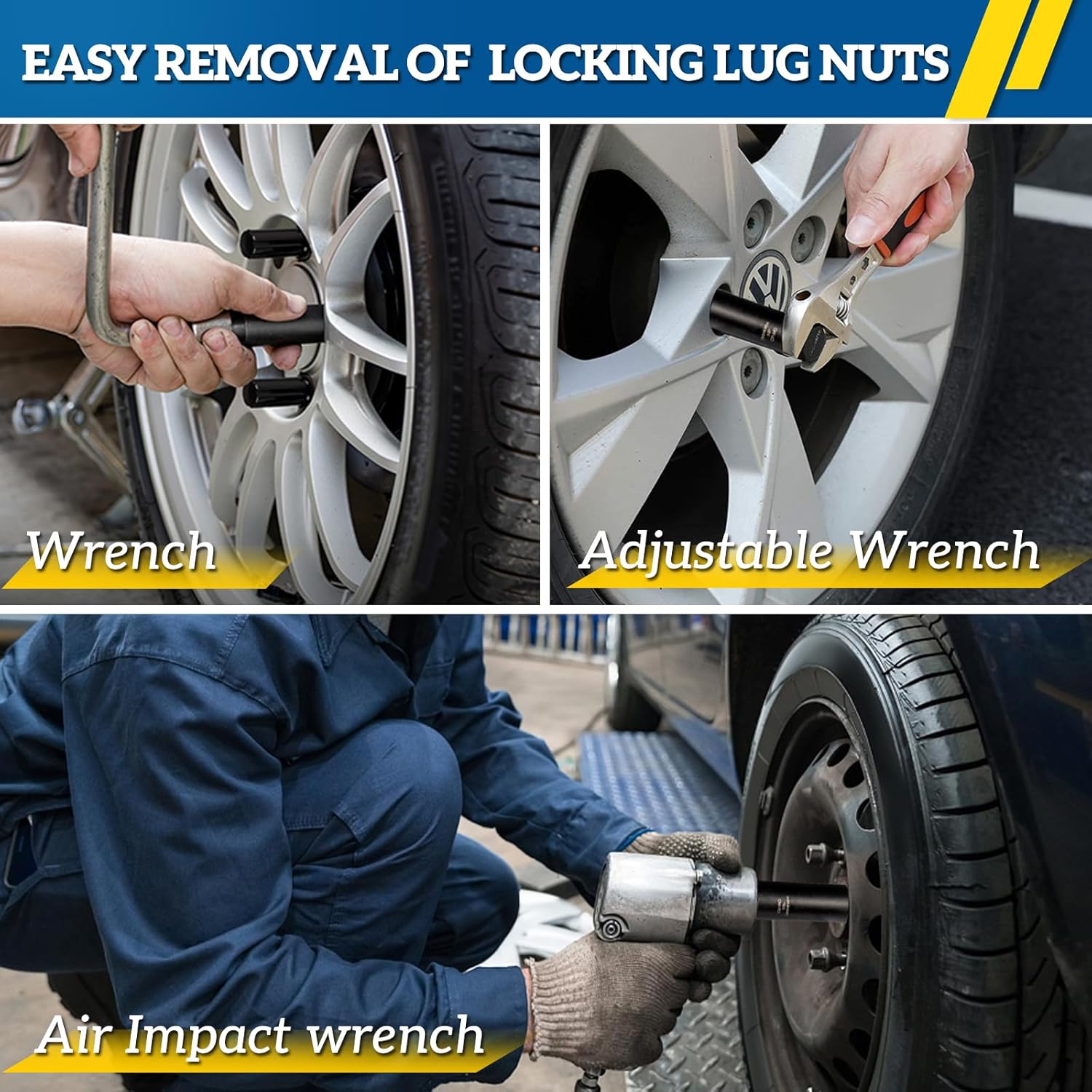 Dual Hex Heads:The special design of wheel lock key allows for use with 13/16-inch and 7/8-inch sockets, as well as most common lug nut wrench sizes.